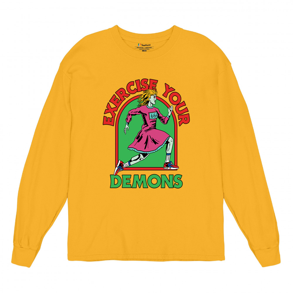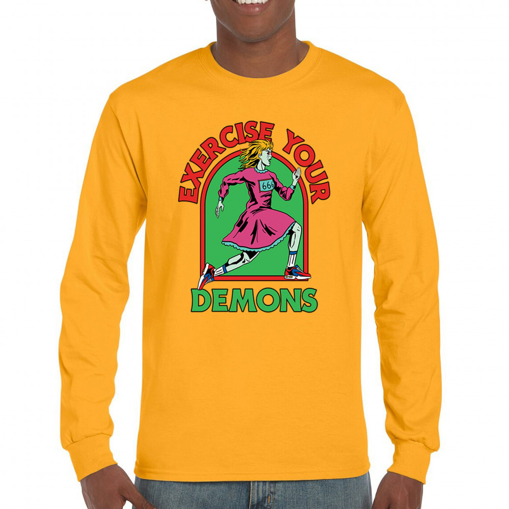Exercise Your Demons shirt – funny halloween gym shirt with fitness humor, scary workout design, demon runner style, and spooky parody vibes.