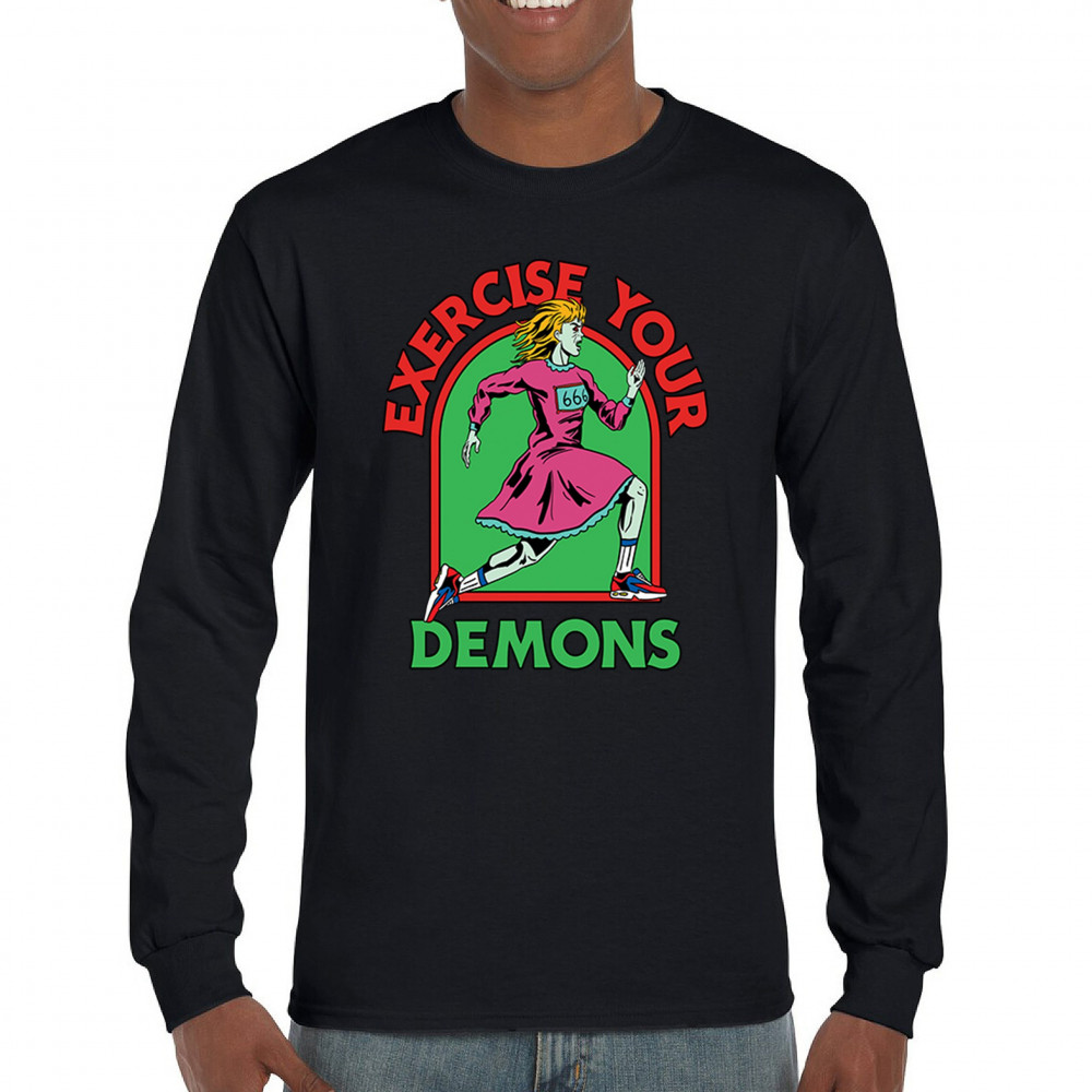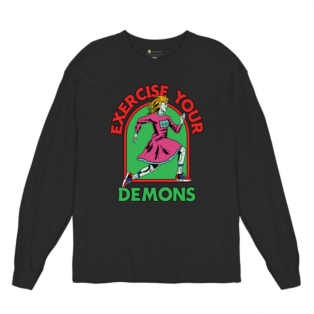 EXERCISE YOUR DEMONS long sleeve t-shirt funny halloween scary jack o lantern black