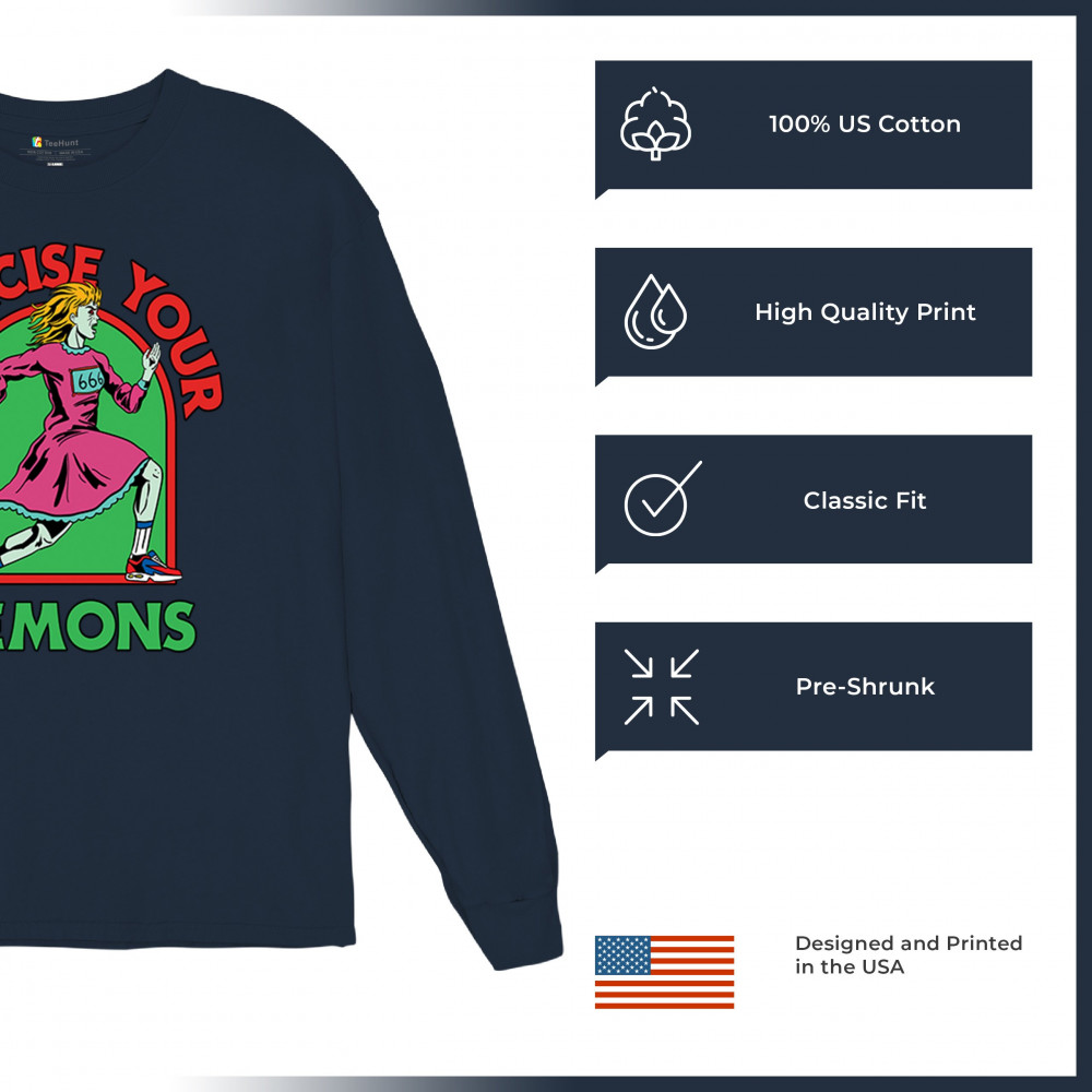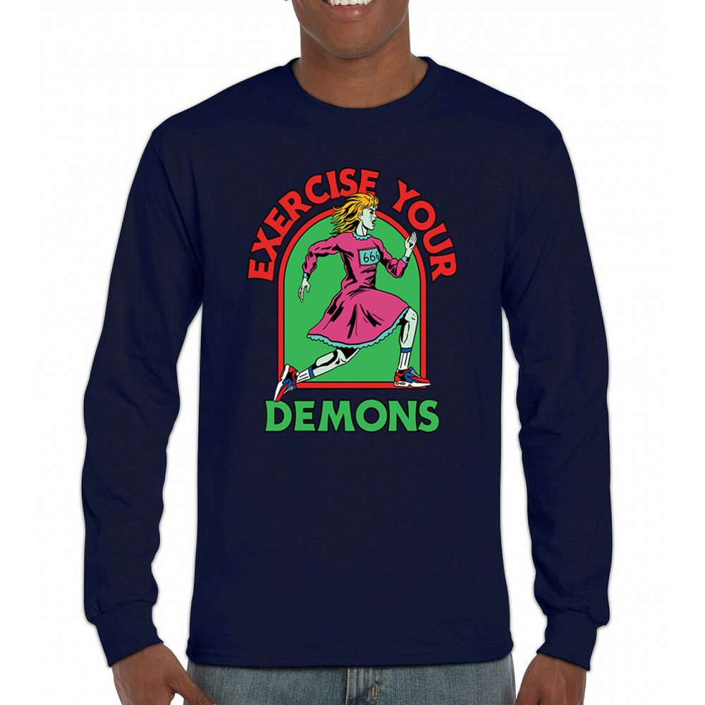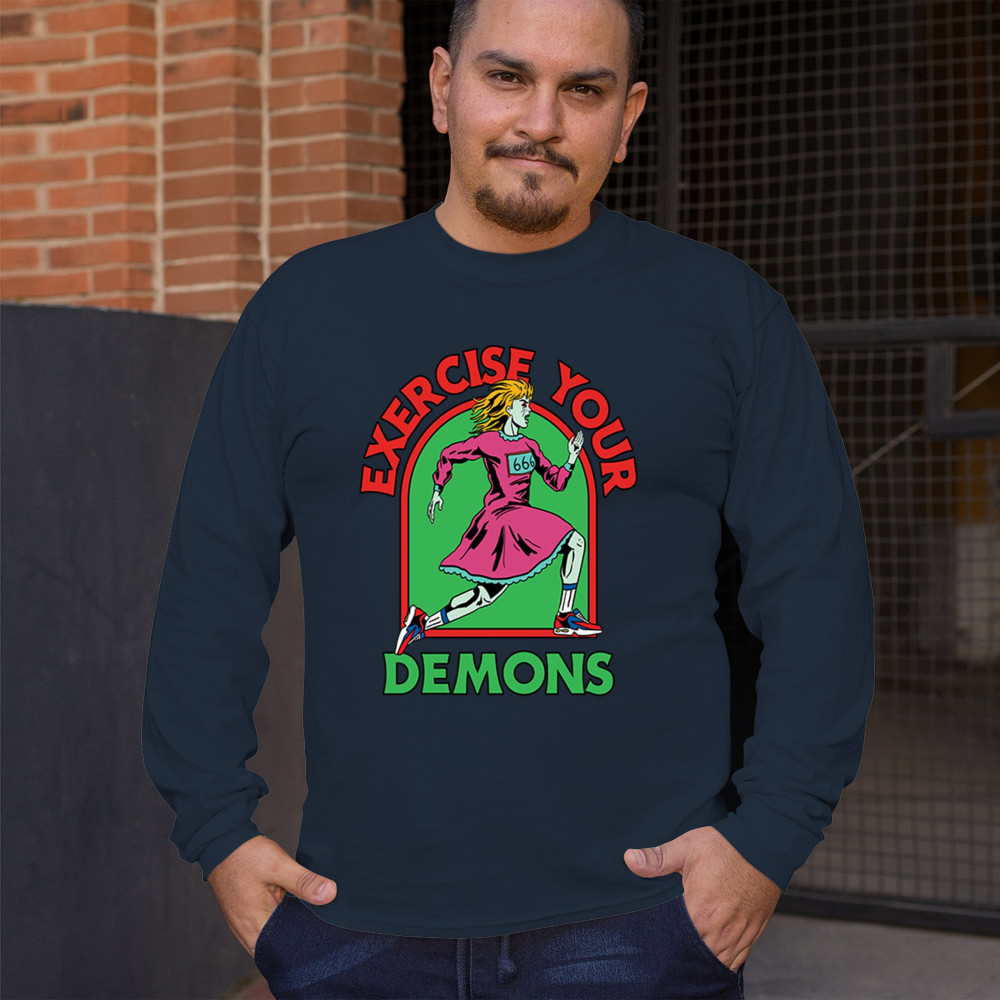 Exercise Your Demons shirt – funny halloween gym shirt with fitness humor, scary workout design, demon runner style, and spooky parody vibes.