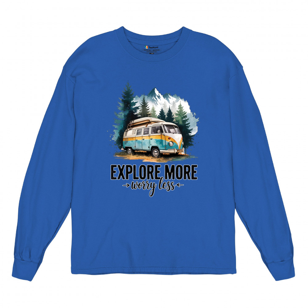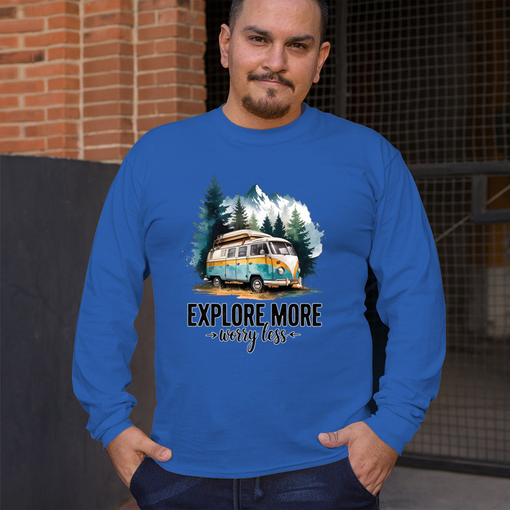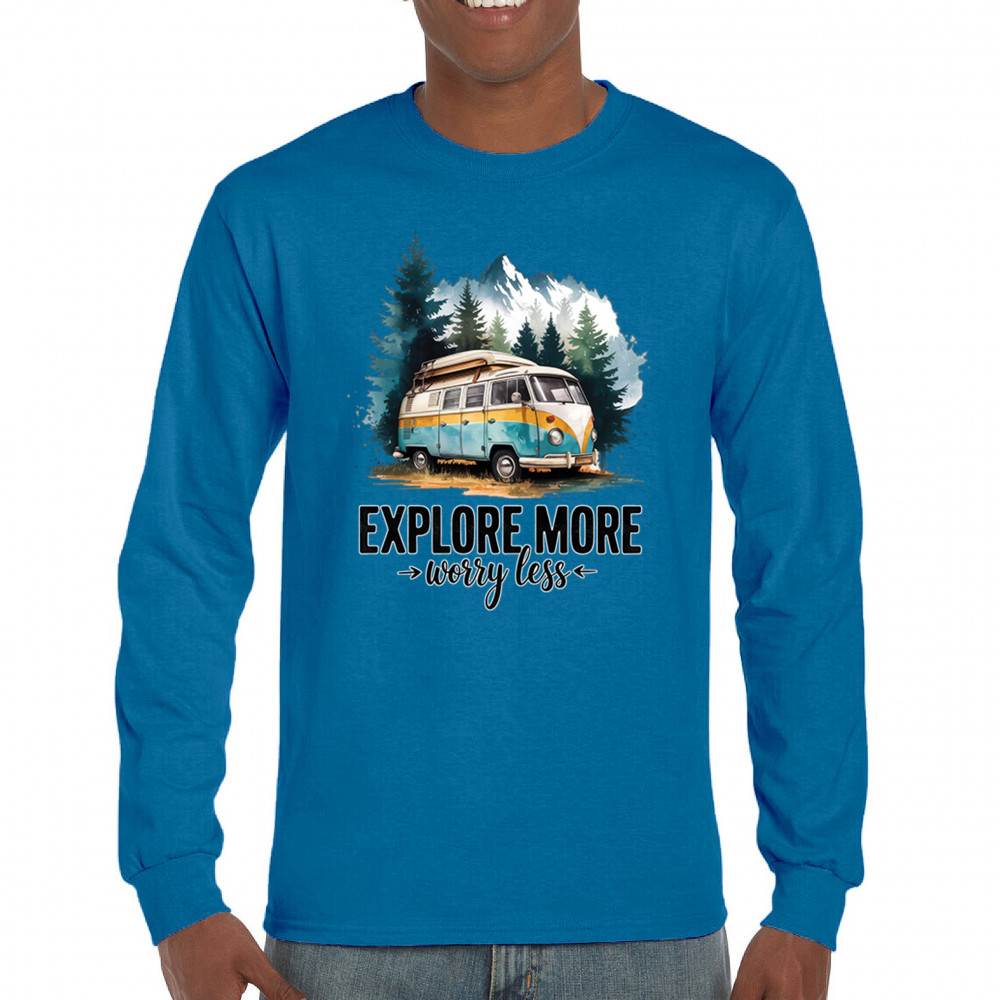 Explore More Worry Less is made for the outdoor soul—celebrating trail lovers, weekend hikers, and national park explorers. Whether you're into off-grid adventures or glamping with family, this design fits your lifestyle. Embrace nature, campfire moments, and wilderness vibes with a look built for your next escape.