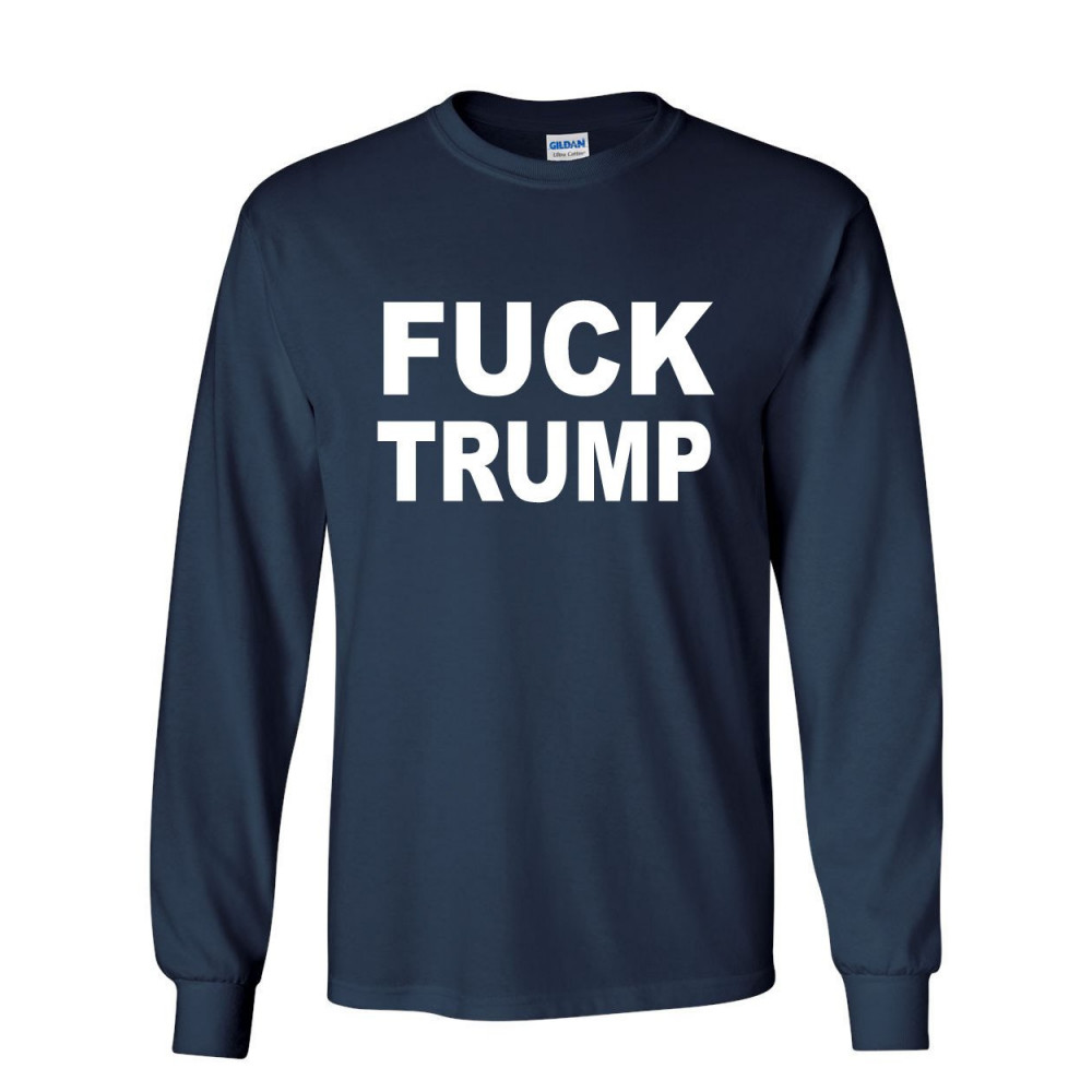 F**K TRUMP long sleeve t-shirt anti trump political navy blue