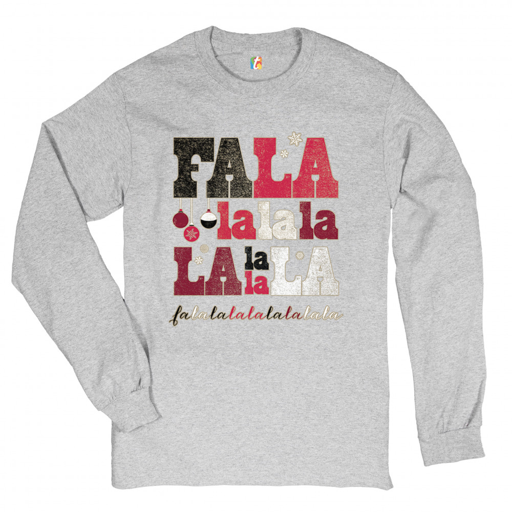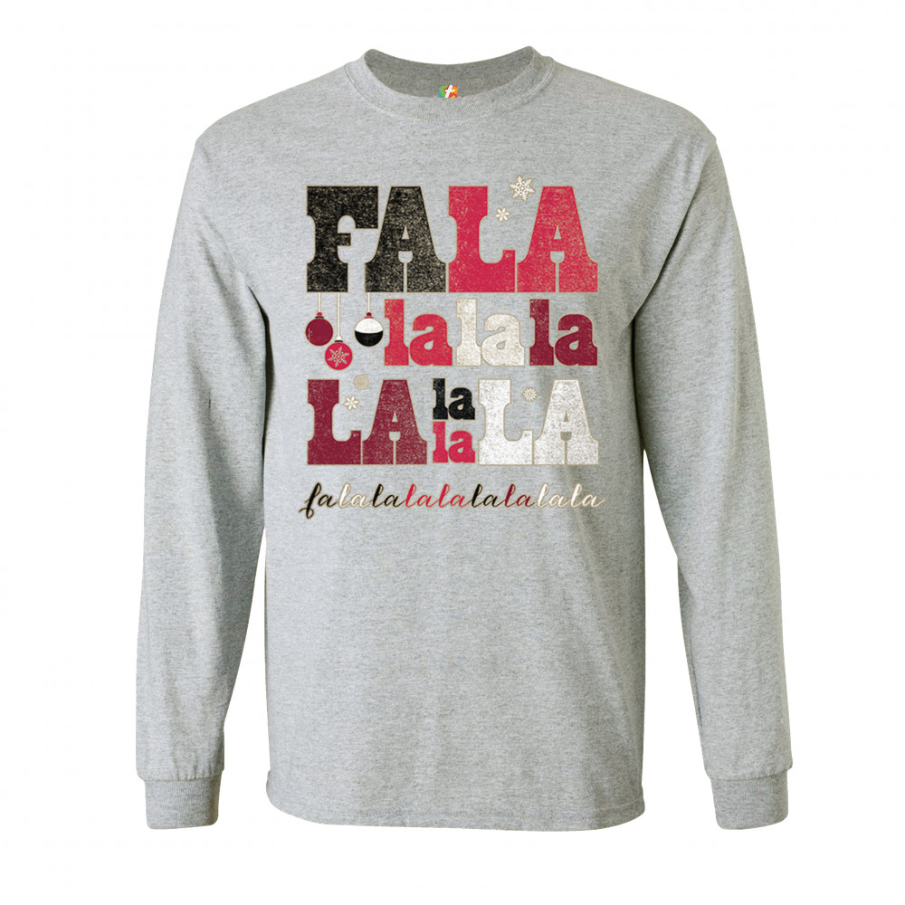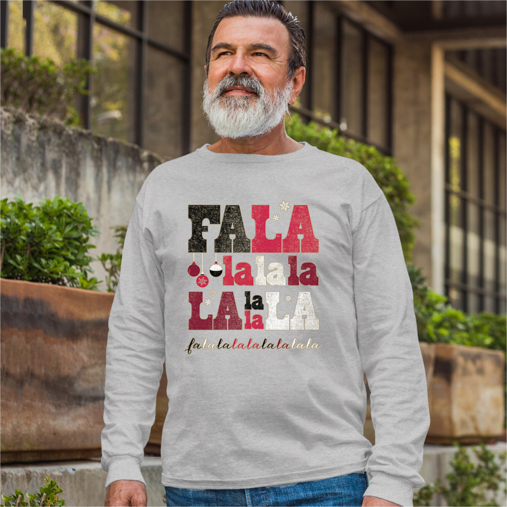 FA LA LA MERRY CHRISTMAS long sleeve t-shirt deck the halls christmas party gray