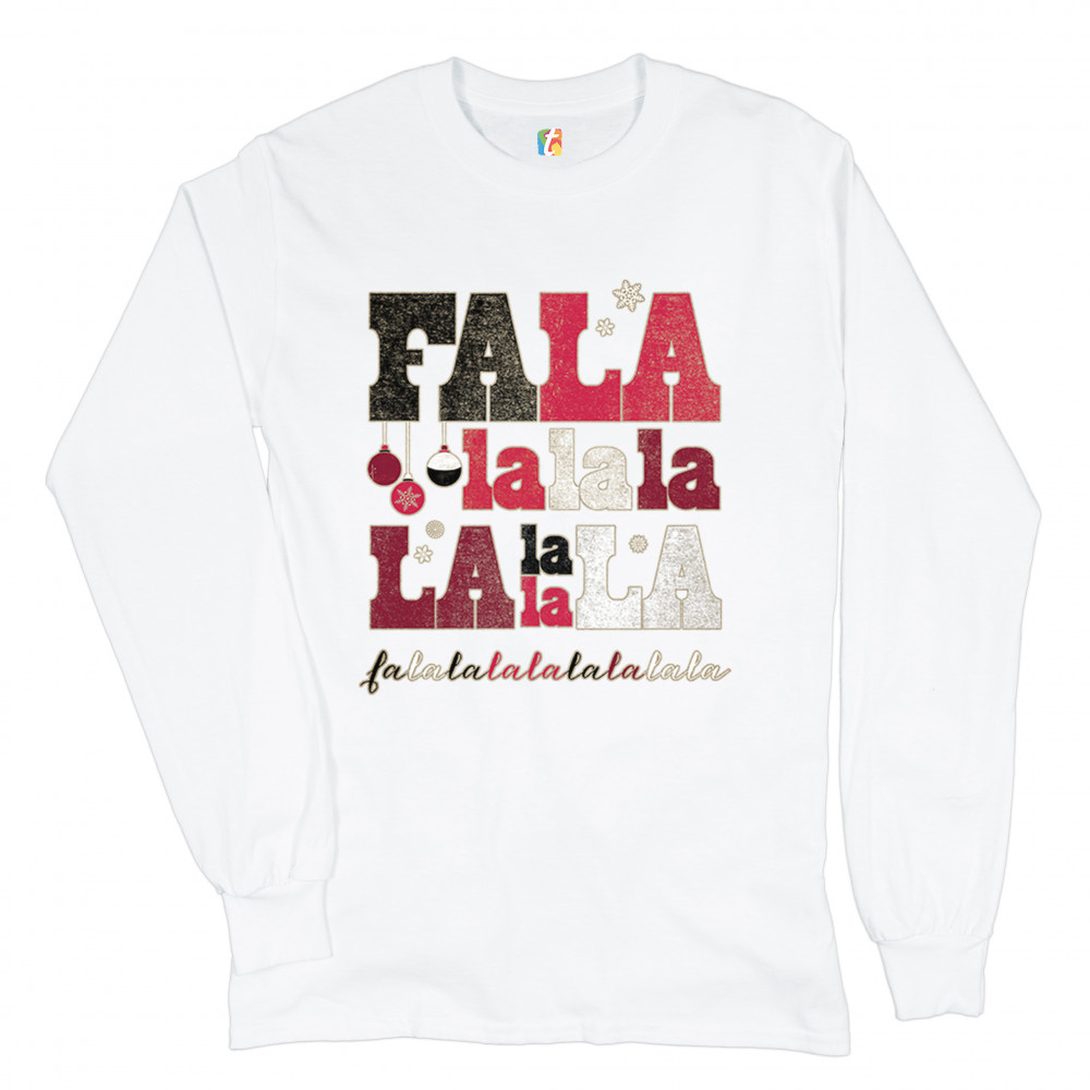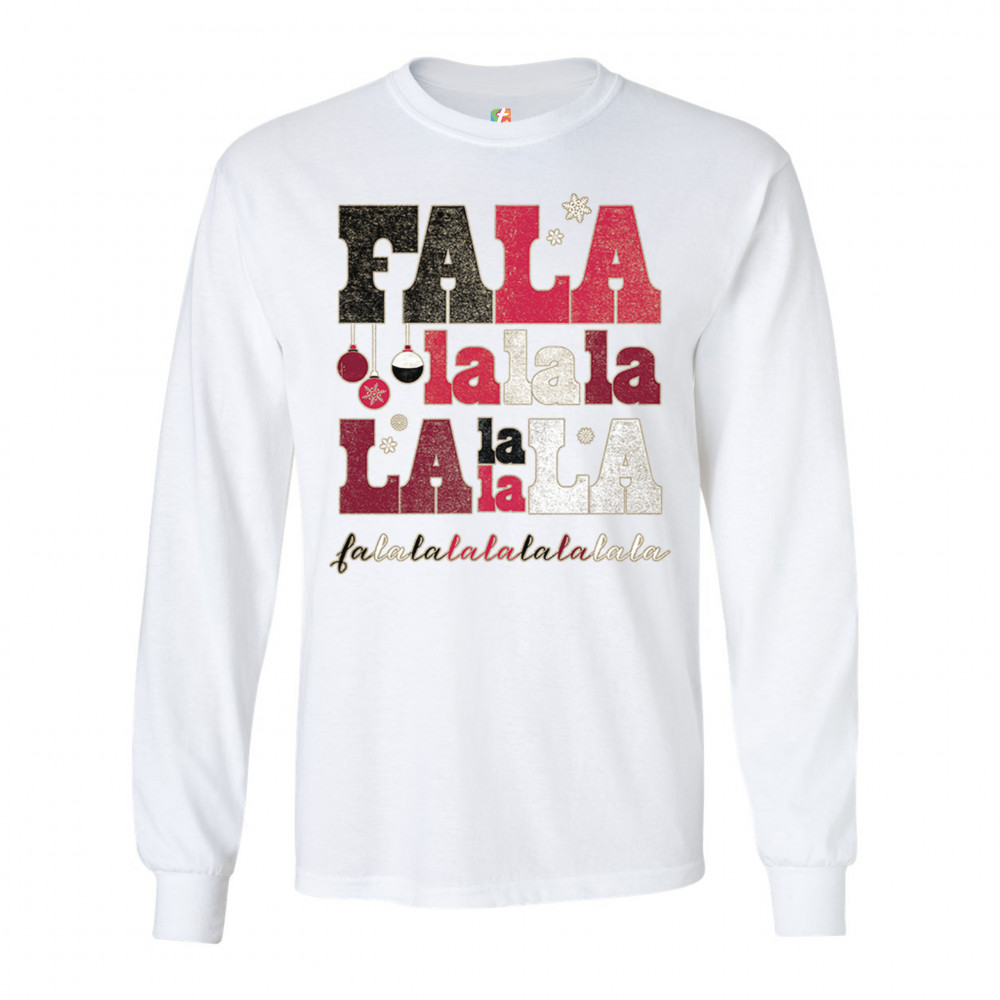 FA LA LA MERRY CHRISTMAS long sleeve t-shirt deck the halls christmas party white