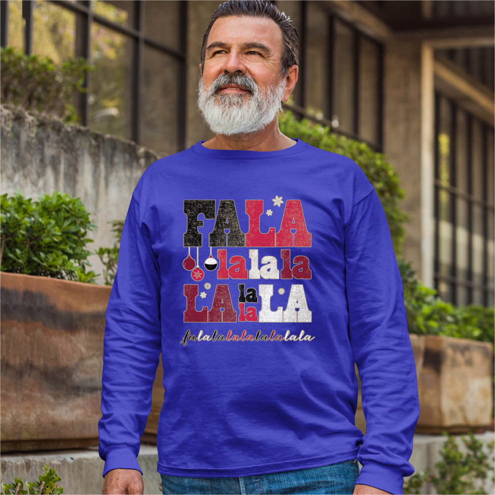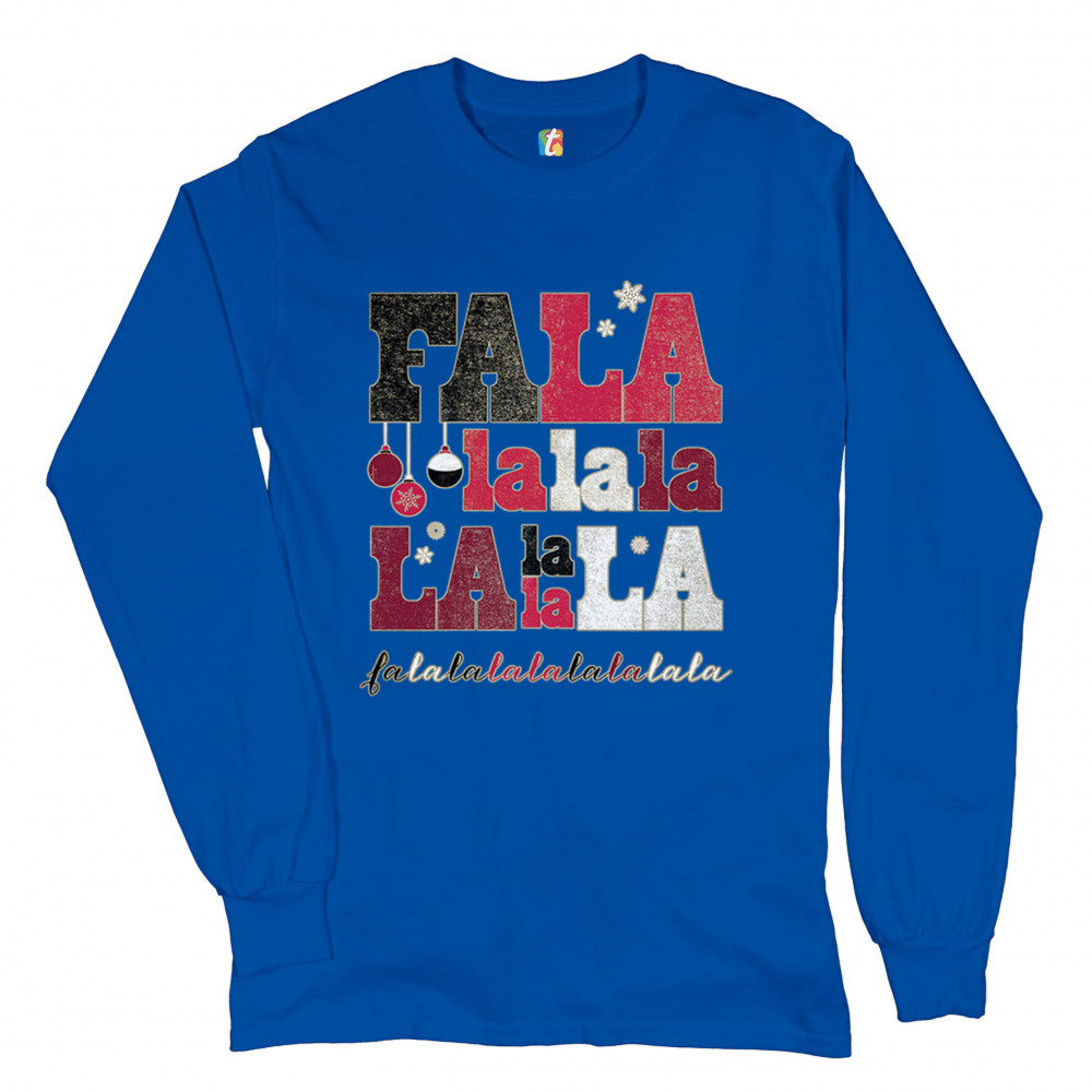 FA LA LA MERRY CHRISTMAS long sleeve t-shirt deck the halls christmas party royal blue