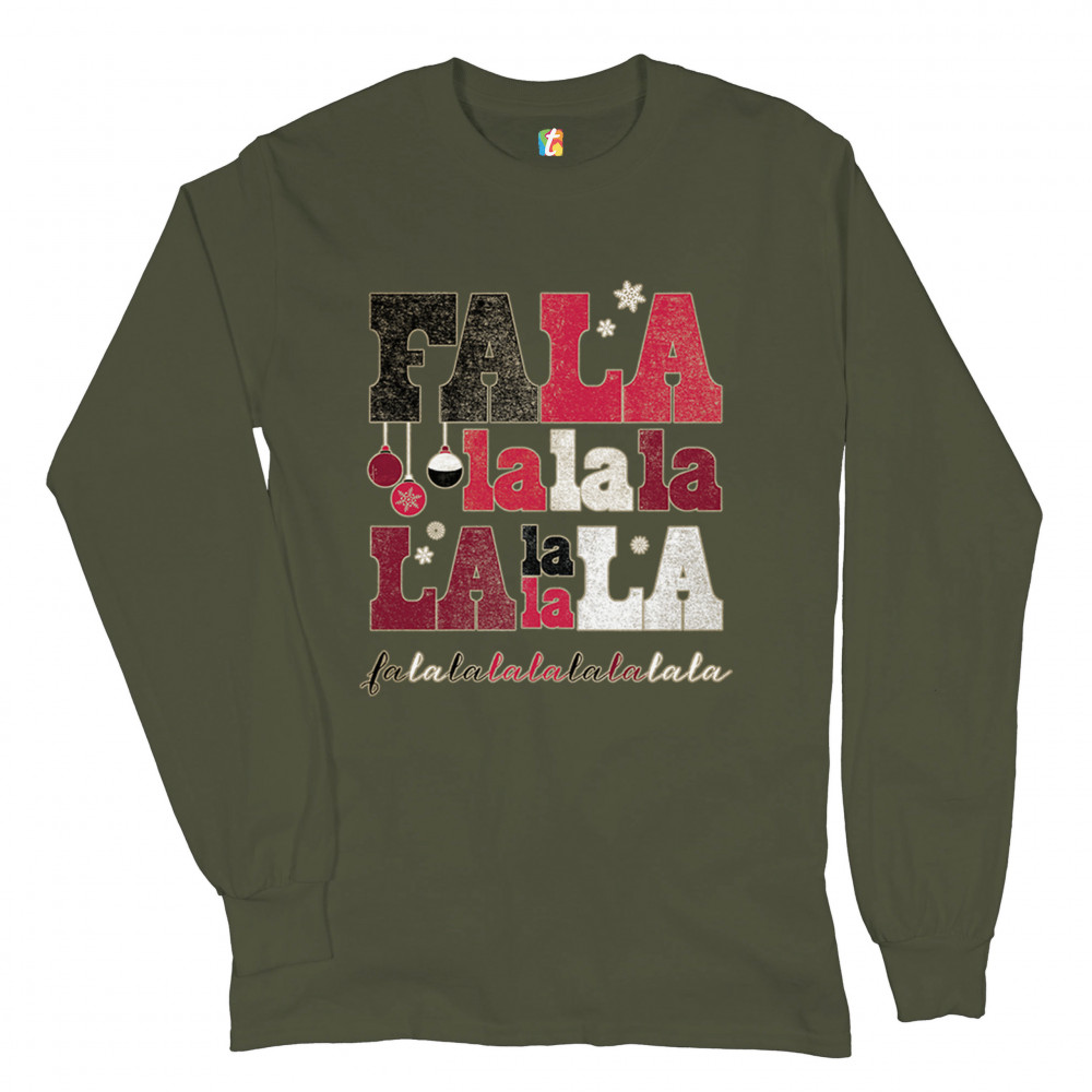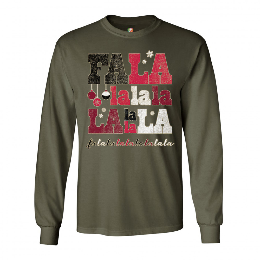 FA LA LA MERRY CHRISTMAS long sleeve t-shirt deck the halls christmas party military green