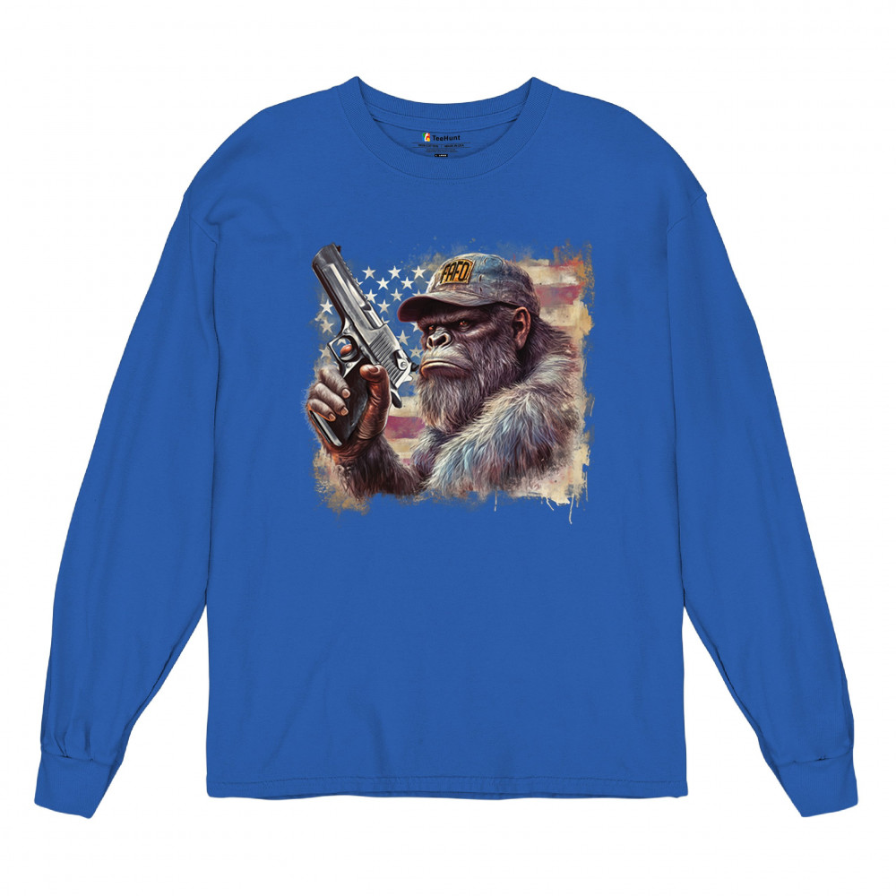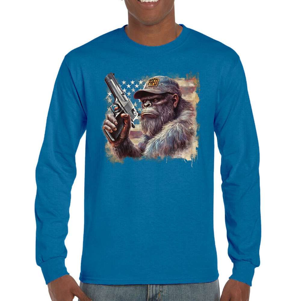 Show your Second Amendment pride with this bold patriotic gorilla design featuring the American flag and a firearm. Perfect for gun rights supporters, veterans, and freedom lovers.