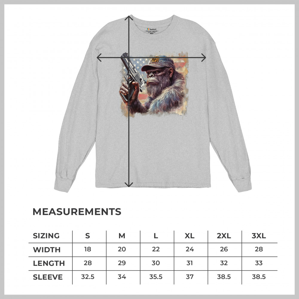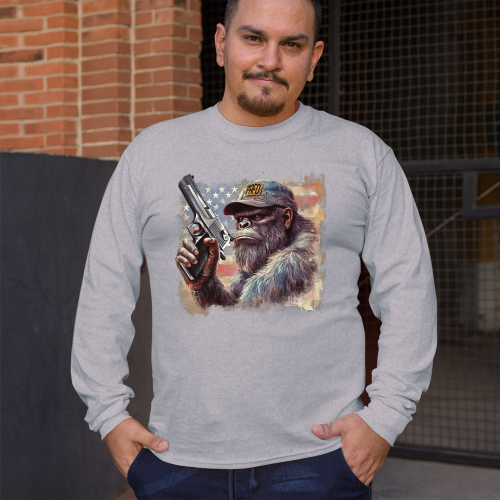 Show your Second Amendment pride with this bold patriotic gorilla design featuring the American flag and a firearm. Perfect for gun rights supporters, veterans, and freedom lovers.