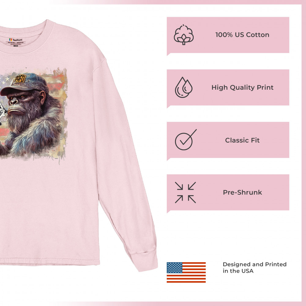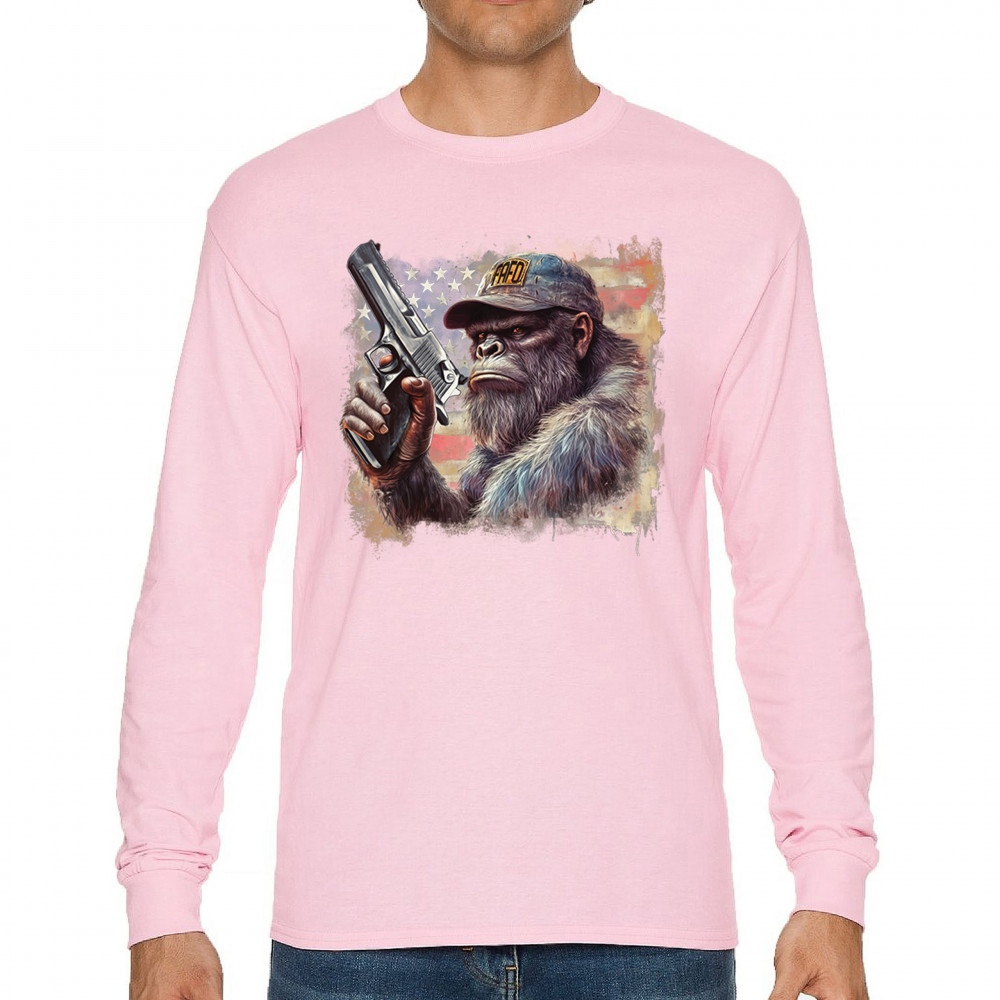 Show your Second Amendment pride with this bold patriotic gorilla design featuring the American flag and a firearm. Perfect for gun rights supporters, veterans, and freedom lovers.