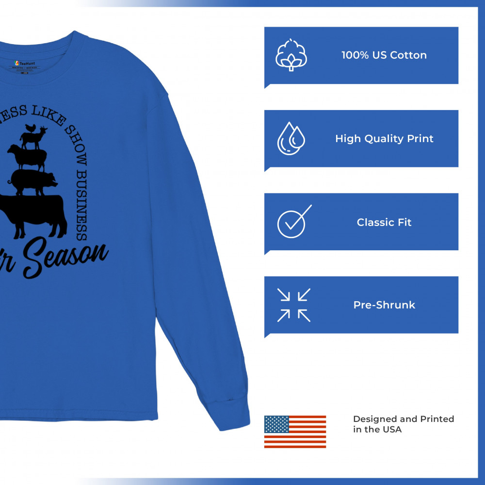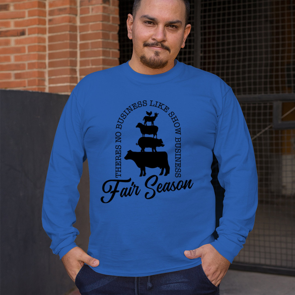 Embrace the spirit of fair season with our "Fair Season" design, ideal for anyone who loves farm animals and the excitement of fairs. Featuring silhouettes of a chicken, goat, sheep, and cow stacked together, this design brings a touch of whimsy and fun to any occasion. Perfect for 4-H members, farmers, and fair enthusiasts, it's a great way to express your love for agricultural fairs and farm life. This design makes an excellent gift, capturing the essence of show business and the joy of the fair season.