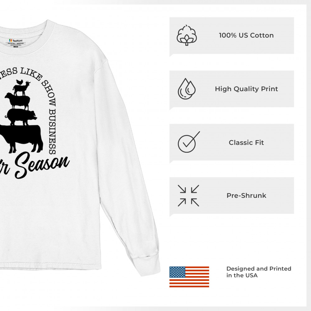 Embrace the spirit of fair season with our "Fair Season" design, ideal for anyone who loves farm animals and the excitement of fairs. Featuring silhouettes of a chicken, goat, sheep, and cow stacked together, this design brings a touch of whimsy and fun to any occasion. Perfect for 4-H members, farmers, and fair enthusiasts, it's a great way to express your love for agricultural fairs and farm life. This design makes an excellent gift, capturing the essence of show business and the joy of the fair season.