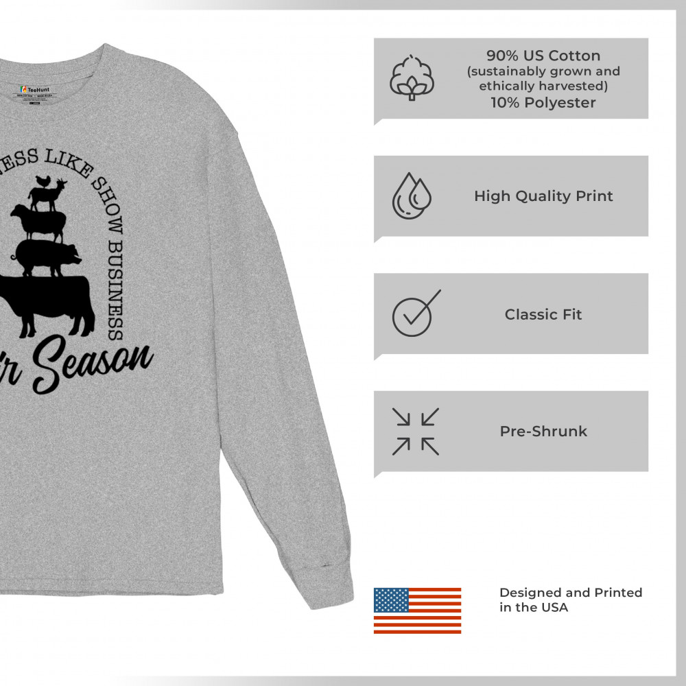 FAIR SEASON long sleeve t-shirt country farm life farmer pride agricultural 4-h gray