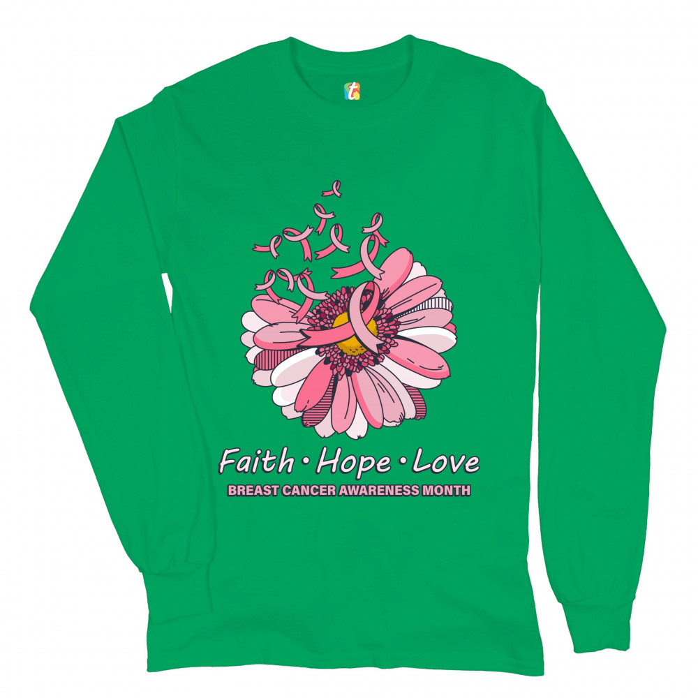 FAITH HOPE LOVE long sleeve t-shirt breast cancer awareness month ribbon flower green