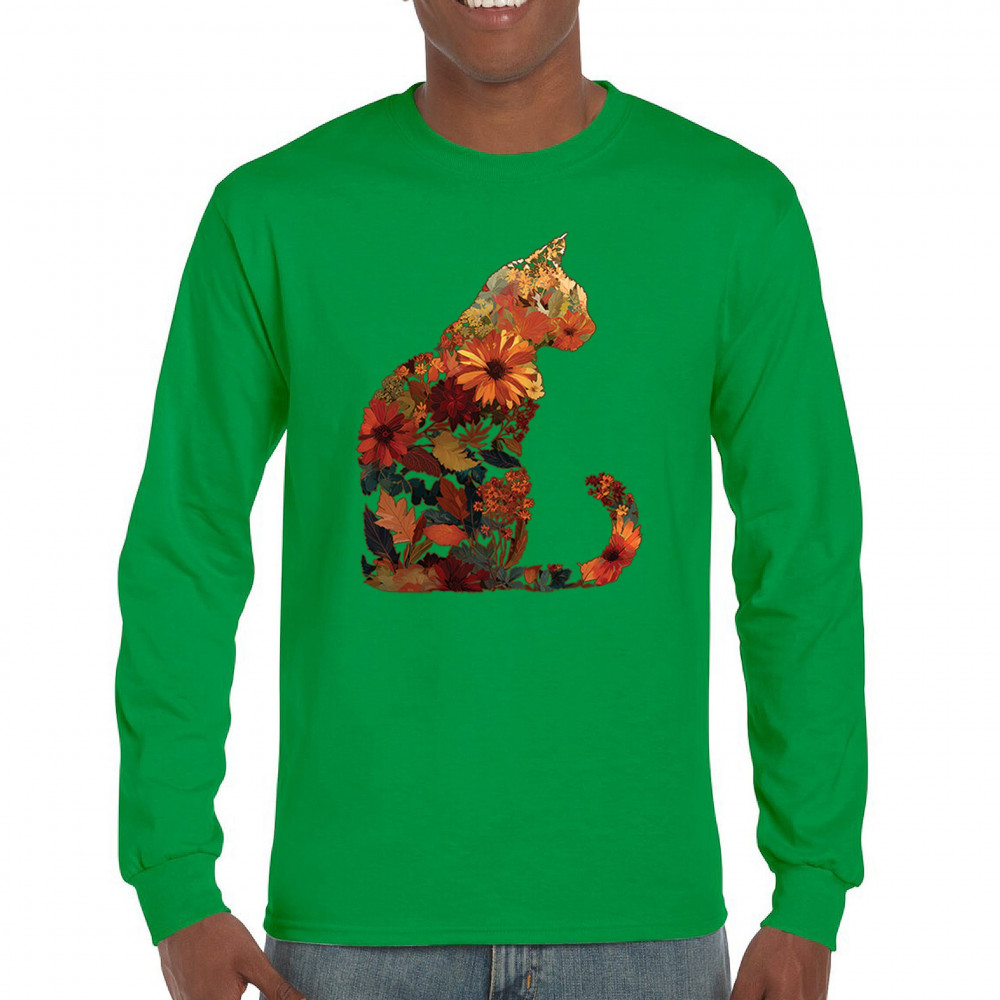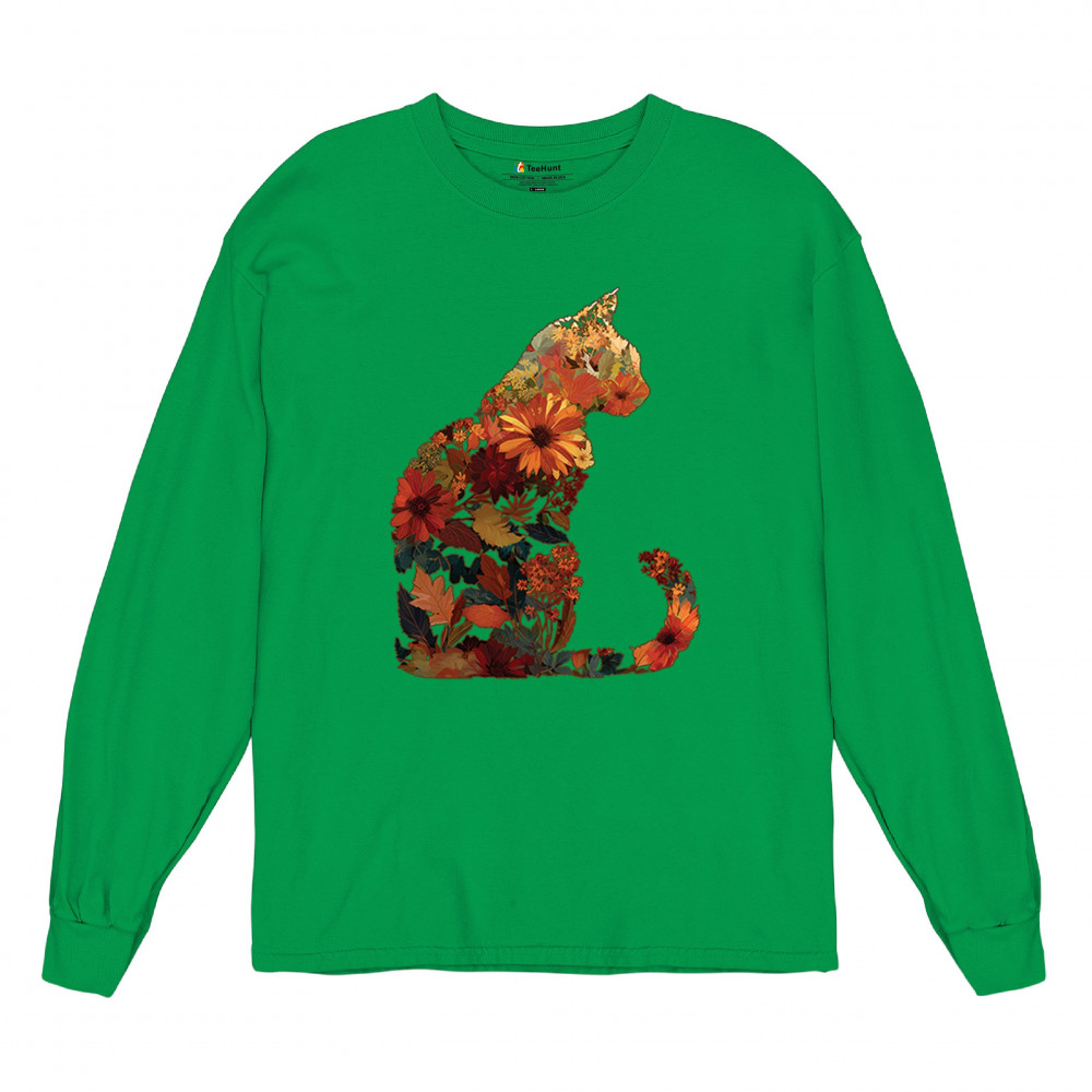 Bring autumn charm to your wardrobe with this cozy cat design filled with fall leaves and florals. Perfect for pet lovers, rustic farmhouse style, pumpkin patch outings, and fall festivals, it’s a unique way to showcase both your love of cats and seasonal harvest vibes.