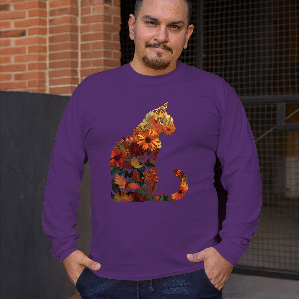 Bring autumn charm to your wardrobe with this cozy cat design filled with fall leaves and florals. Perfect for pet lovers, rustic farmhouse style, pumpkin patch outings, and fall festivals, it’s a unique way to showcase both your love of cats and seasonal harvest vibes.