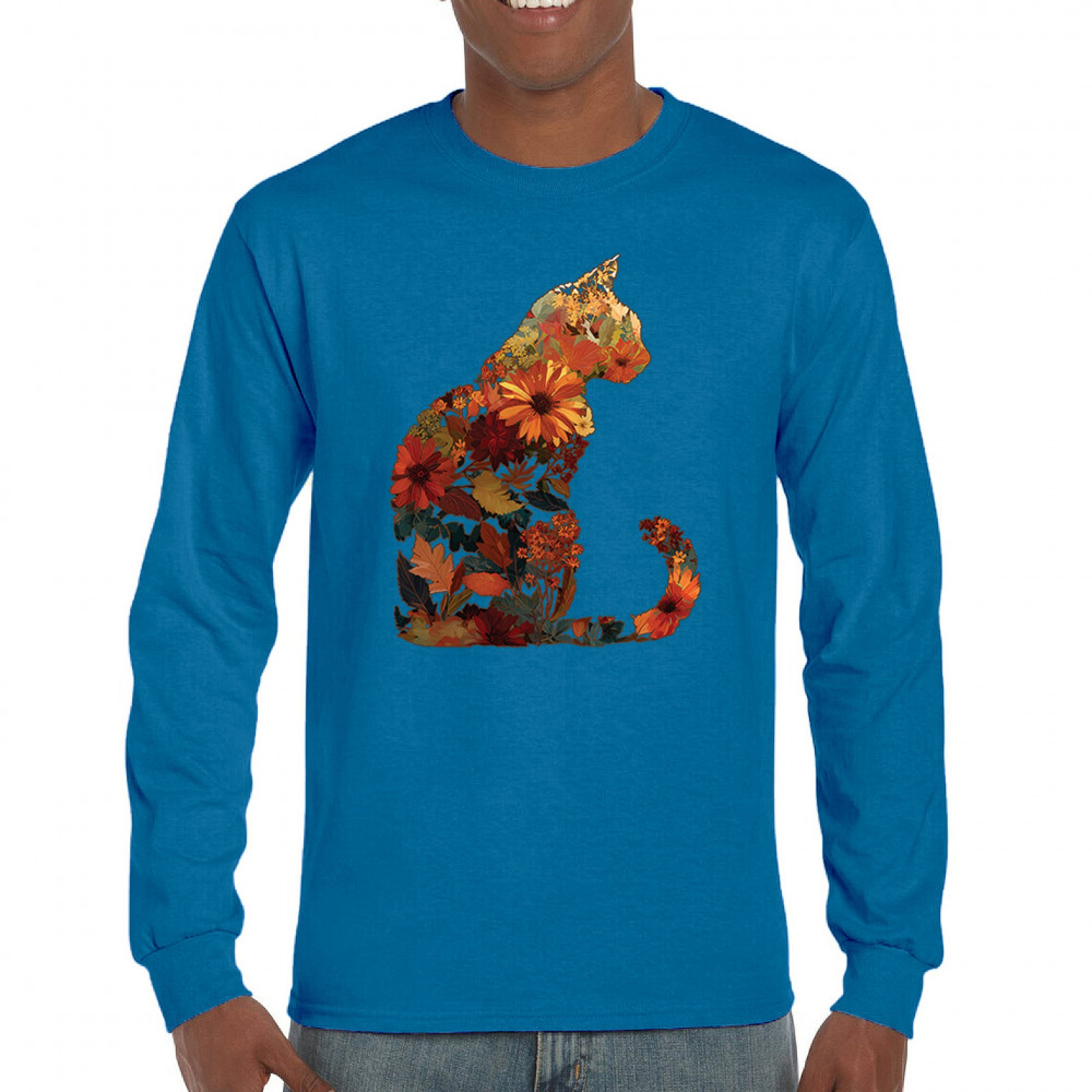 Bring autumn charm to your wardrobe with this cozy cat design filled with fall leaves and florals. Perfect for pet lovers, rustic farmhouse style, pumpkin patch outings, and fall festivals, it’s a unique way to showcase both your love of cats and seasonal harvest vibes.