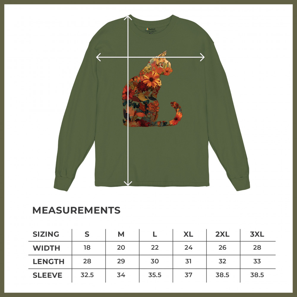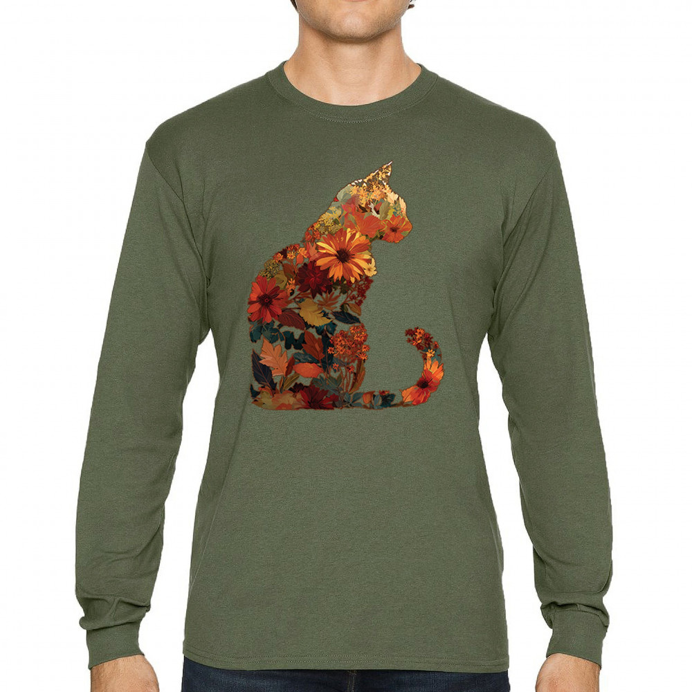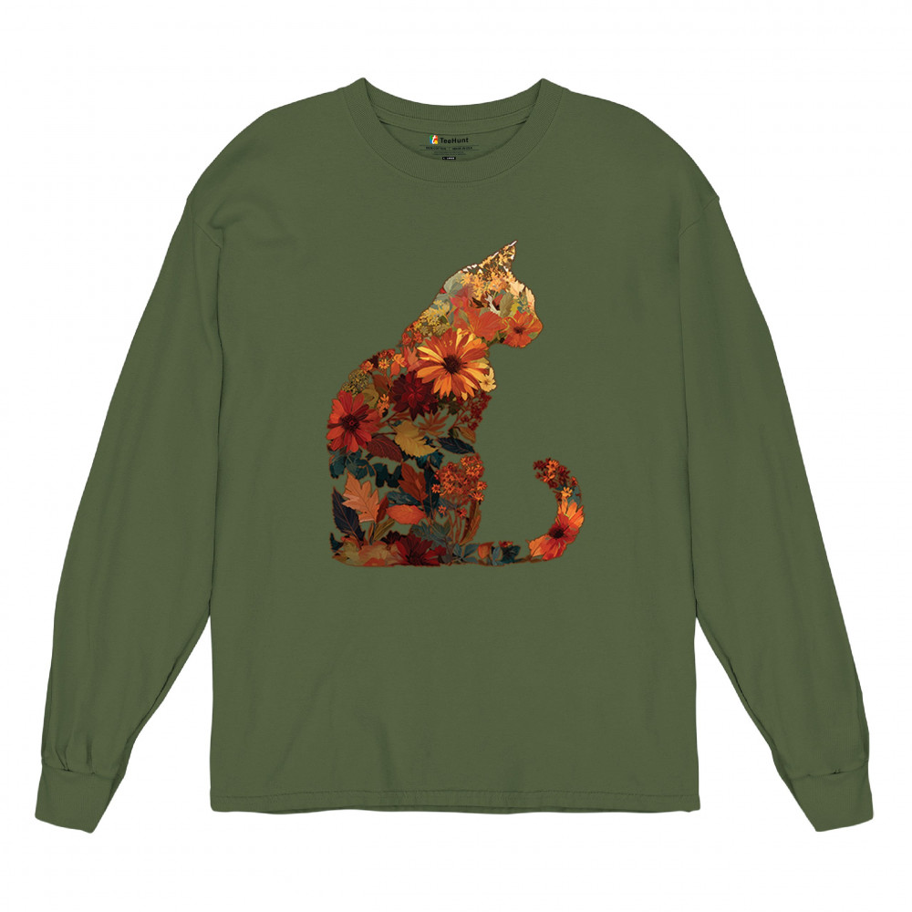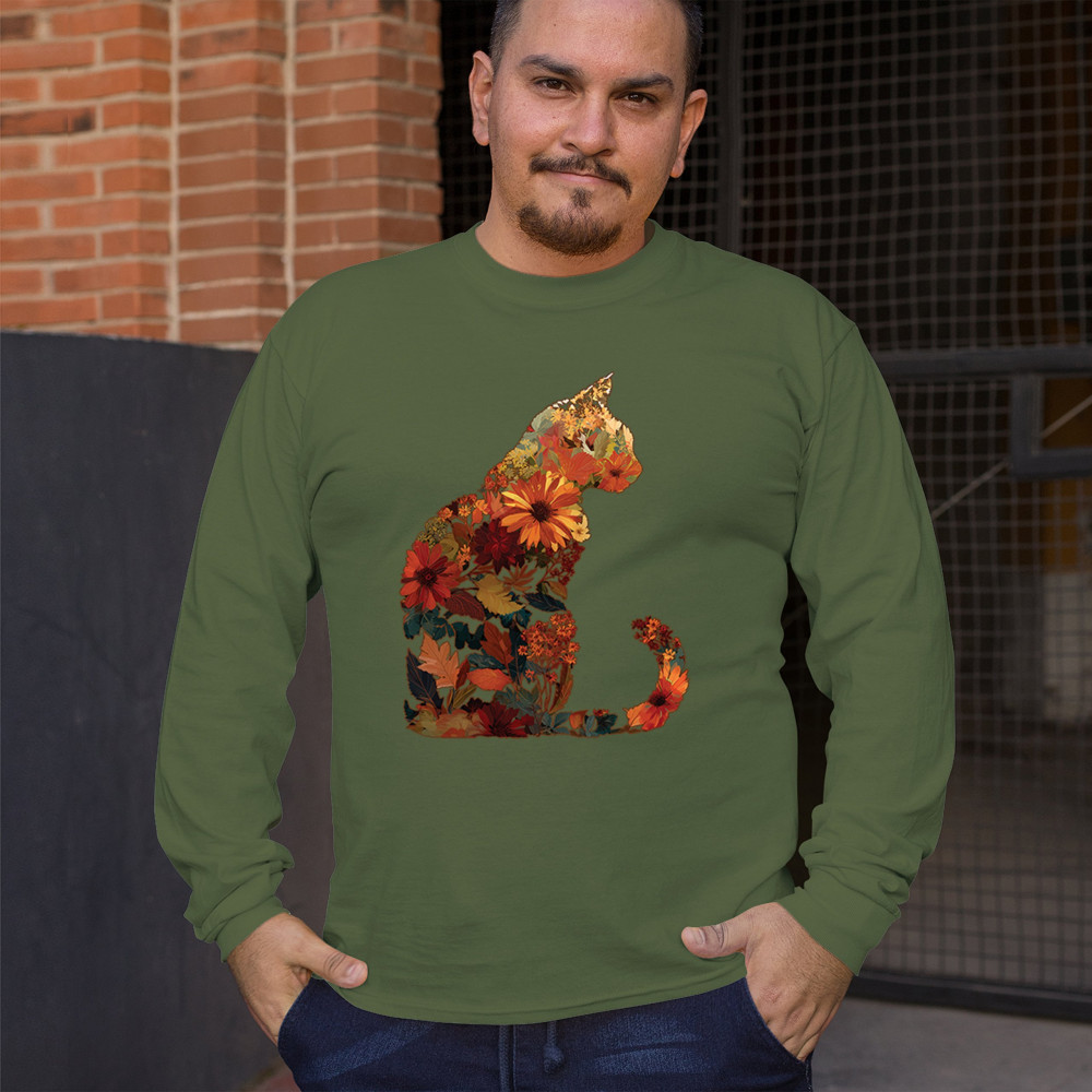 Bring autumn charm to your wardrobe with this cozy cat design filled with fall leaves and florals. Perfect for pet lovers, rustic farmhouse style, pumpkin patch outings, and fall festivals, it’s a unique way to showcase both your love of cats and seasonal harvest vibes.