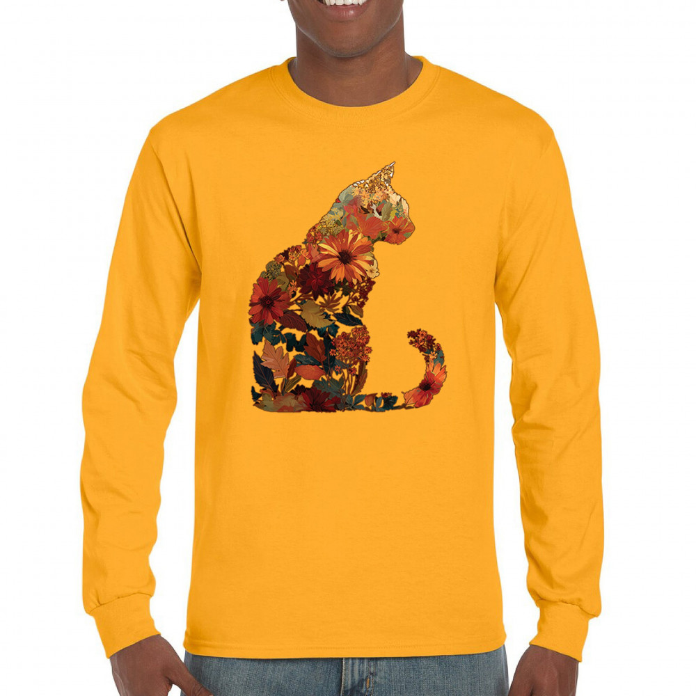 Bring autumn charm to your wardrobe with this cozy cat design filled with fall leaves and florals. Perfect for pet lovers, rustic farmhouse style, pumpkin patch outings, and fall festivals, it’s a unique way to showcase both your love of cats and seasonal harvest vibes.