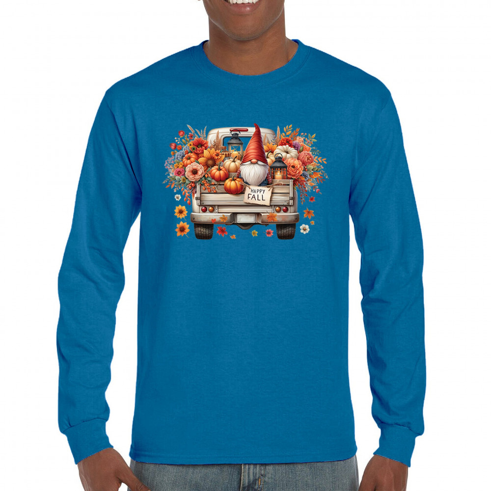 Bring fall charm into your wardrobe with this rustic gnome truck design. Overflowing with pumpkins, wildflowers, and a glowing lantern, it’s perfect for Thanksgiving, farmhouse gatherings, harvest festivals, and celebrating the floral autumn season in cozy style.