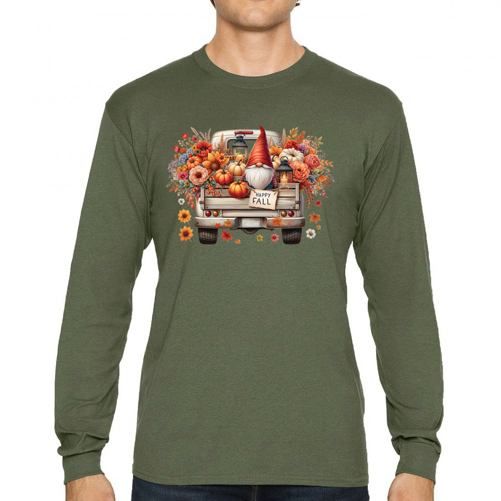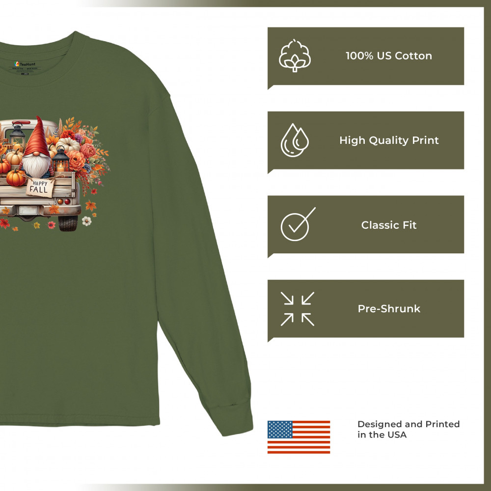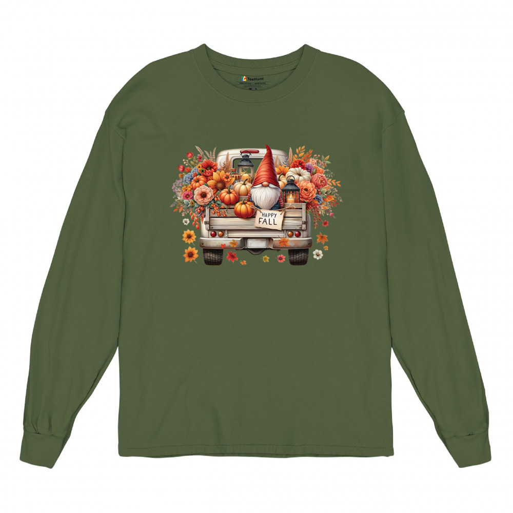 Bring fall charm into your wardrobe with this rustic gnome truck design. Overflowing with pumpkins, wildflowers, and a glowing lantern, it’s perfect for Thanksgiving, farmhouse gatherings, harvest festivals, and celebrating the floral autumn season in cozy style.