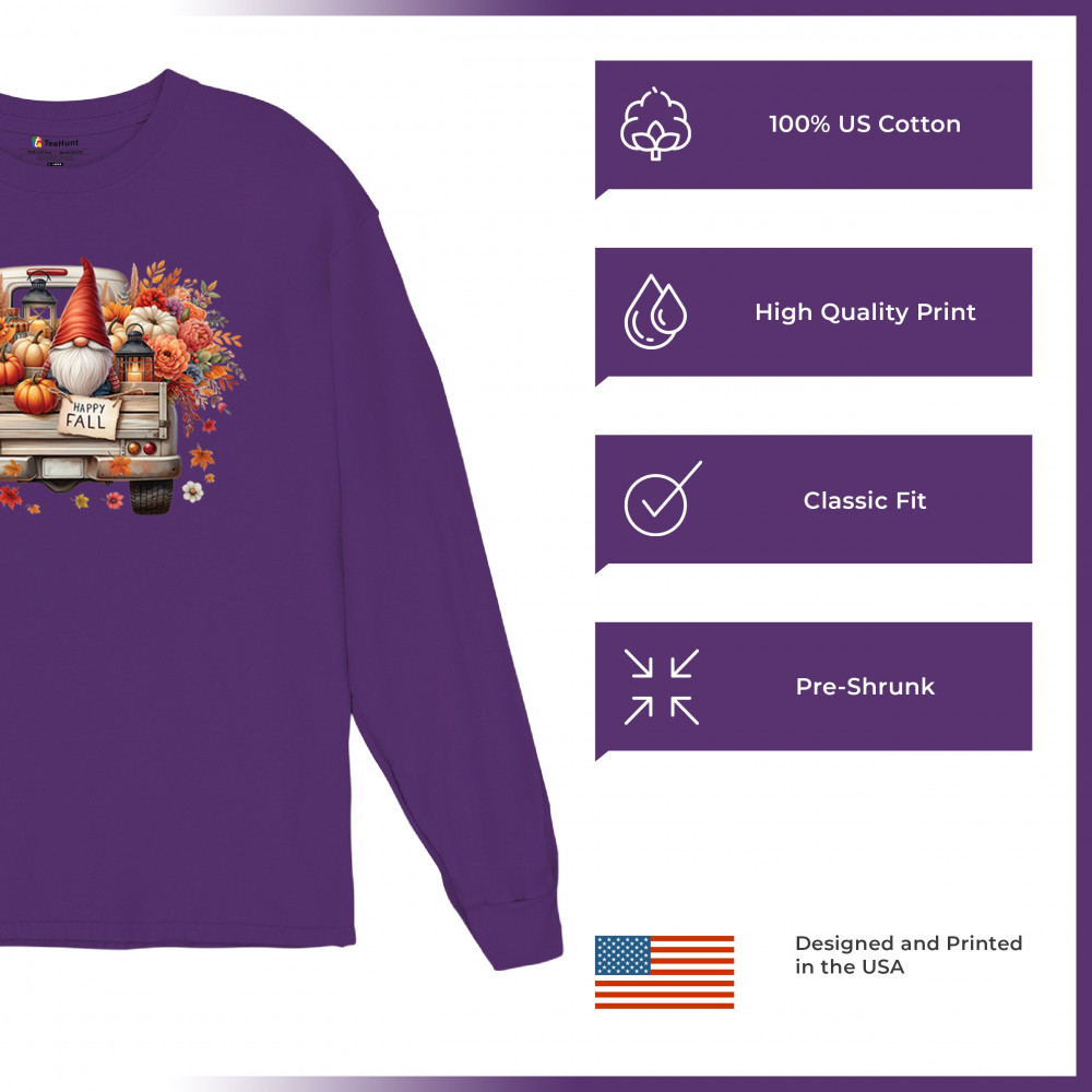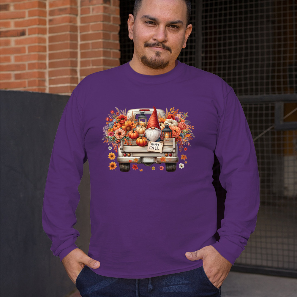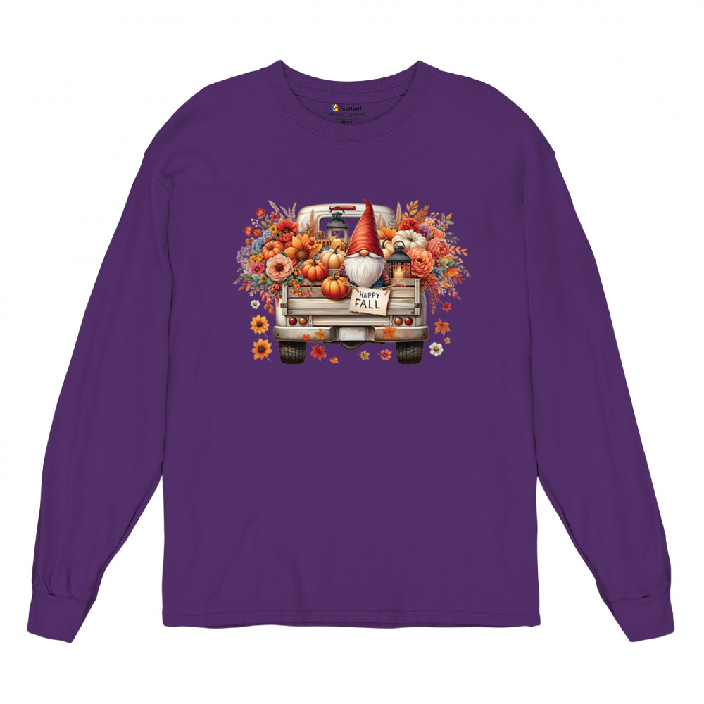Bring fall charm into your wardrobe with this rustic gnome truck design. Overflowing with pumpkins, wildflowers, and a glowing lantern, it’s perfect for Thanksgiving, farmhouse gatherings, harvest festivals, and celebrating the floral autumn season in cozy style.