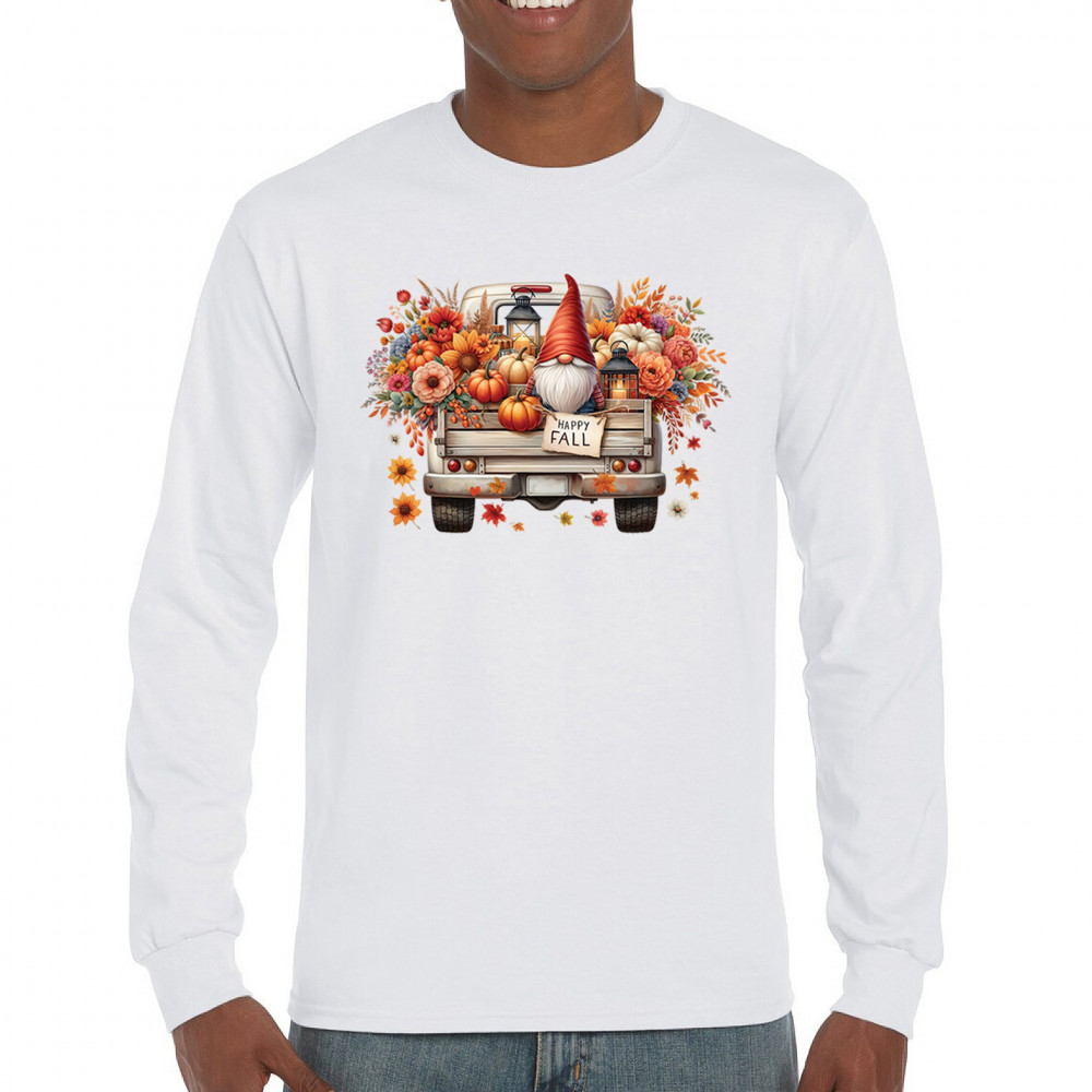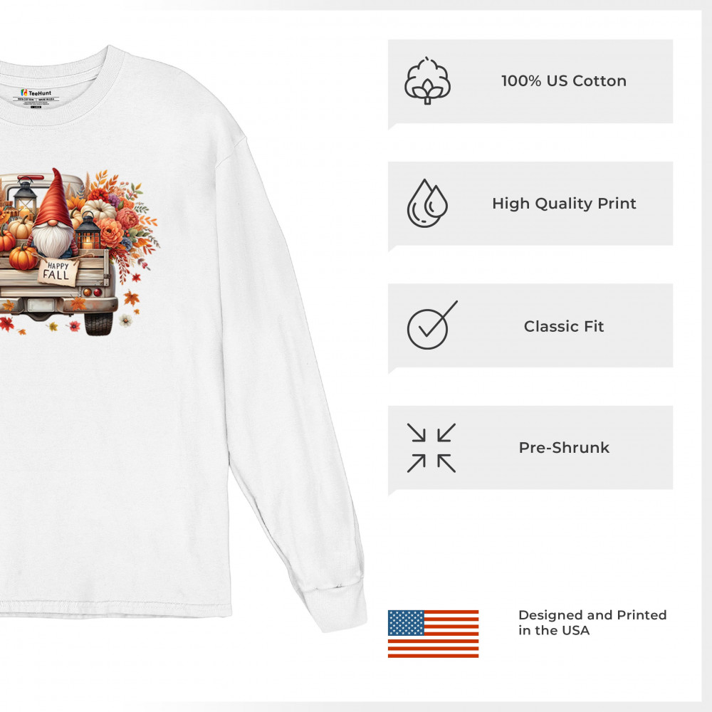 Bring fall charm into your wardrobe with this rustic gnome truck design. Overflowing with pumpkins, wildflowers, and a glowing lantern, it’s perfect for Thanksgiving, farmhouse gatherings, harvest festivals, and celebrating the floral autumn season in cozy style.