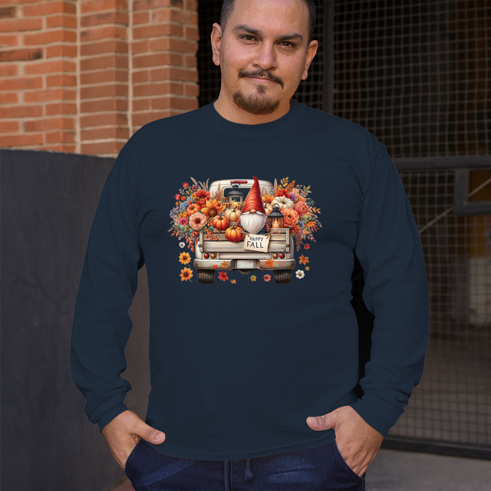 Bring fall charm into your wardrobe with this rustic gnome truck design. Overflowing with pumpkins, wildflowers, and a glowing lantern, it’s perfect for Thanksgiving, farmhouse gatherings, harvest festivals, and celebrating the floral autumn season in cozy style.