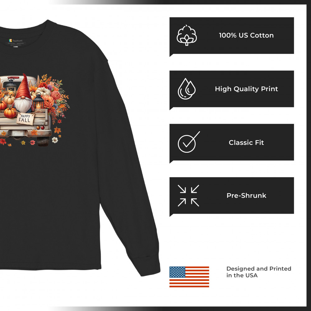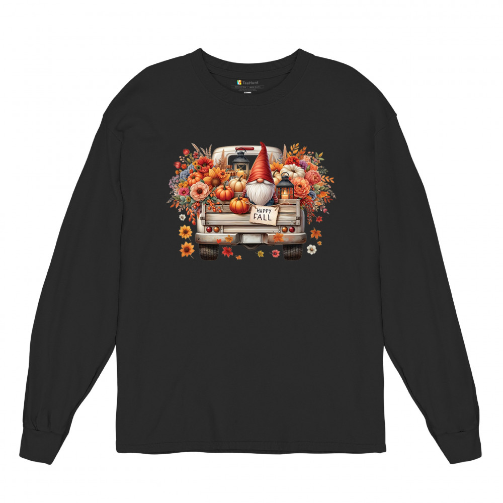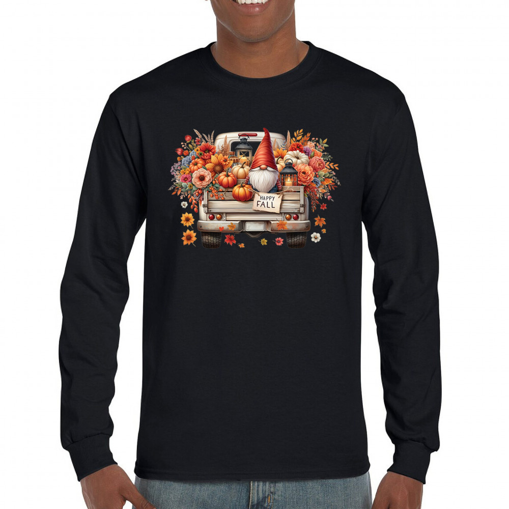 FALL GNOME TRUCK long sleeve t-shirt pumpkin patch cozy thanksgiving harvest black