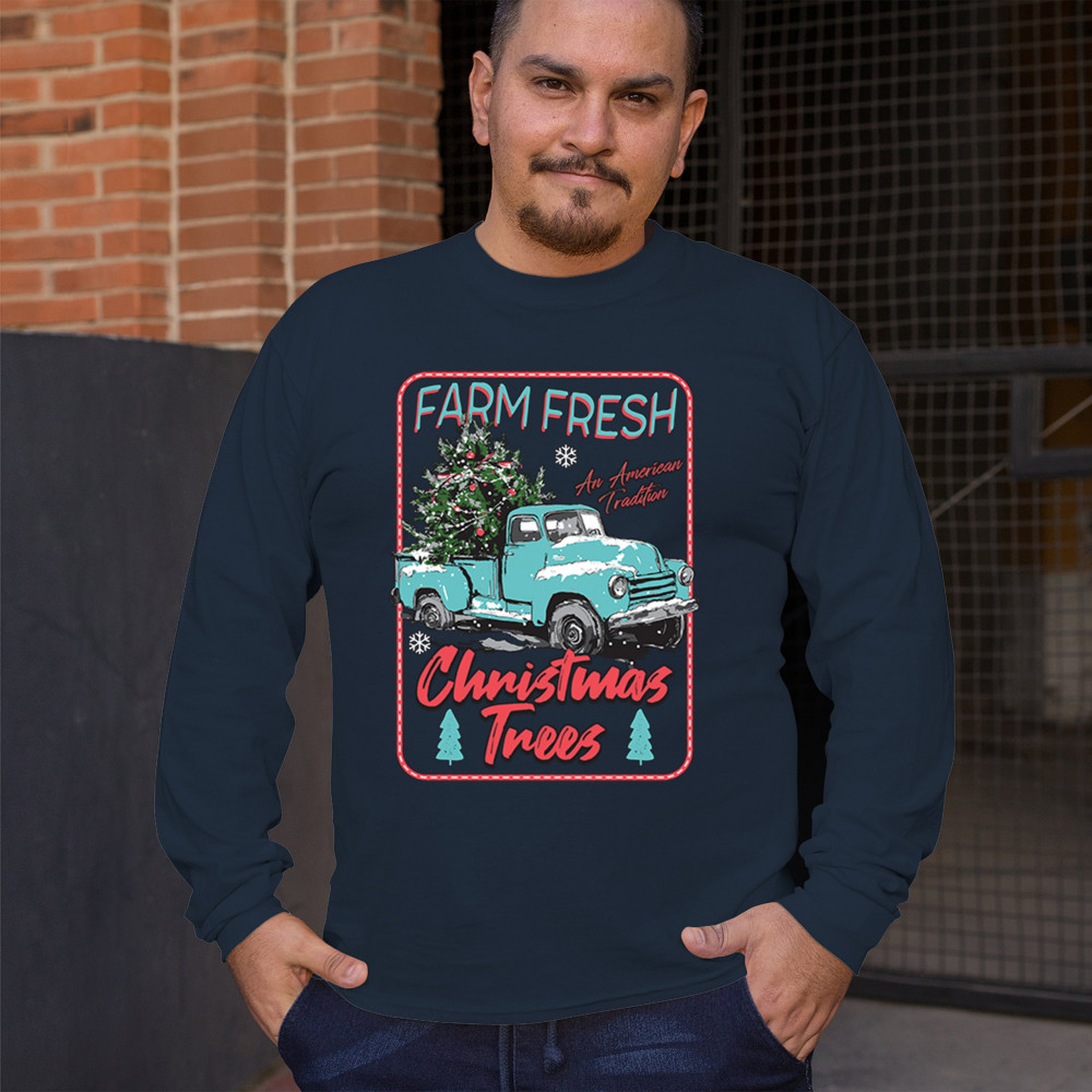 Celebrate the season with "Farm Fresh Christmas Trees" – a nostalgic design perfect for festive decor, matching outfits, and holiday gatherings.