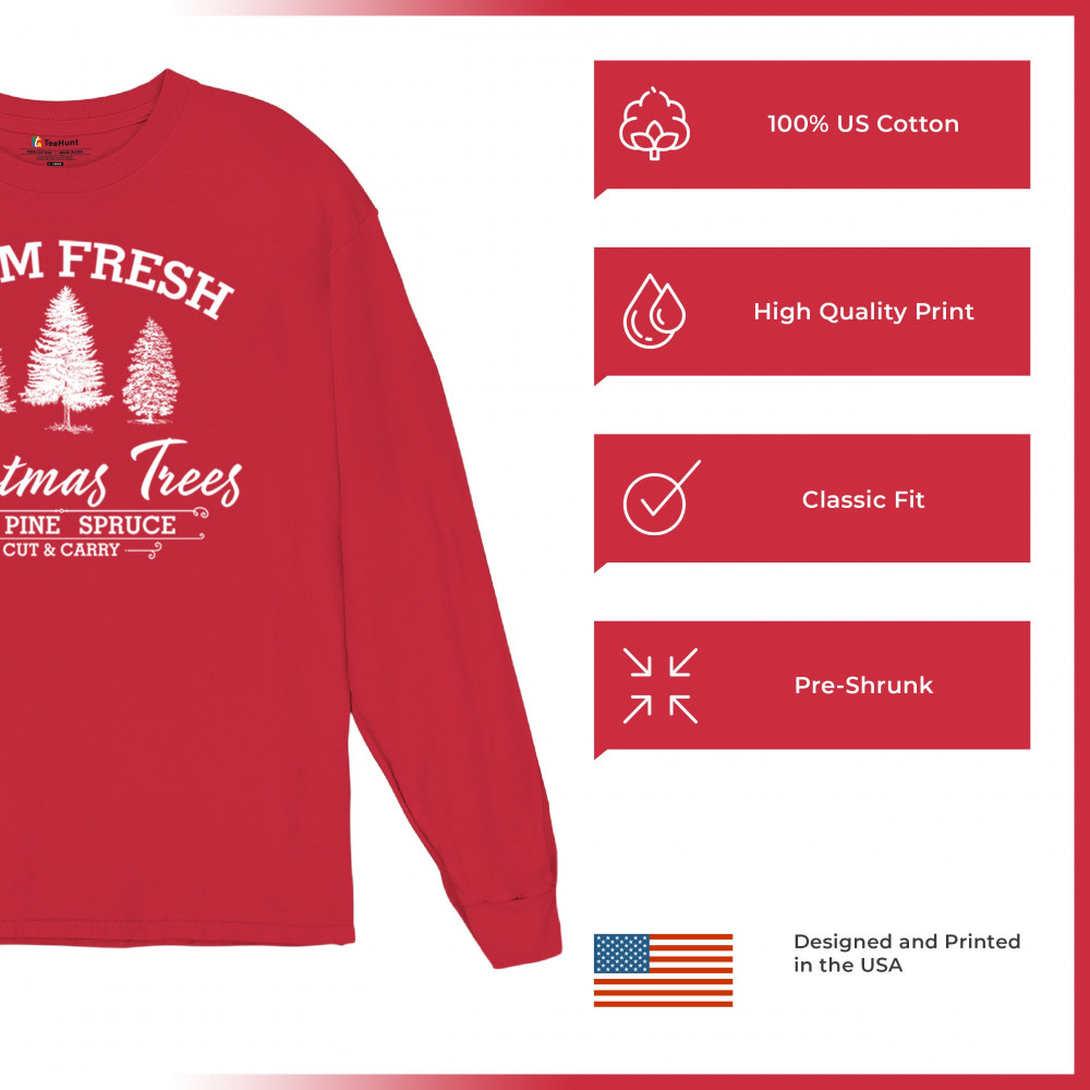 Add a nostalgic touch to your holiday celebrations with this "Farm Fresh Christmas Trees" design. Featuring fir, pine, and spruce trees, it’s ideal for Christmas lovers, matching family pajamas, or even festive gatherings. Perfect for cozy holiday mornings, Secret Santa gifts, or holiday office parties, this design brings a touch of rustic charm to any setting. Capture the spirit of the season with this delightful holiday print, designed to spread cheer and warmth.