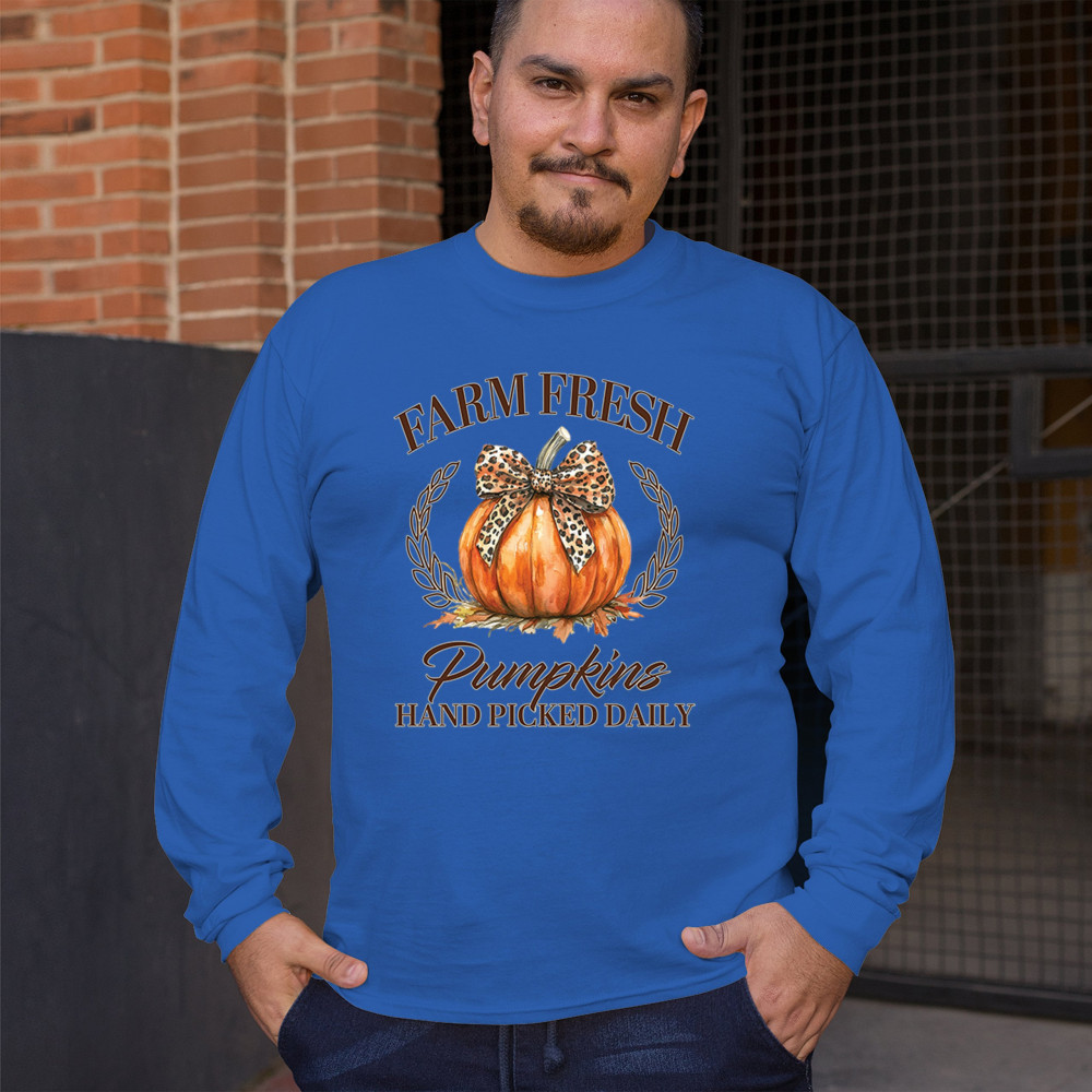 Bring the warmth of autumn into your life with this "Farm Fresh Pumpkins" design. Perfect for seasonal decor and fall festivities.
