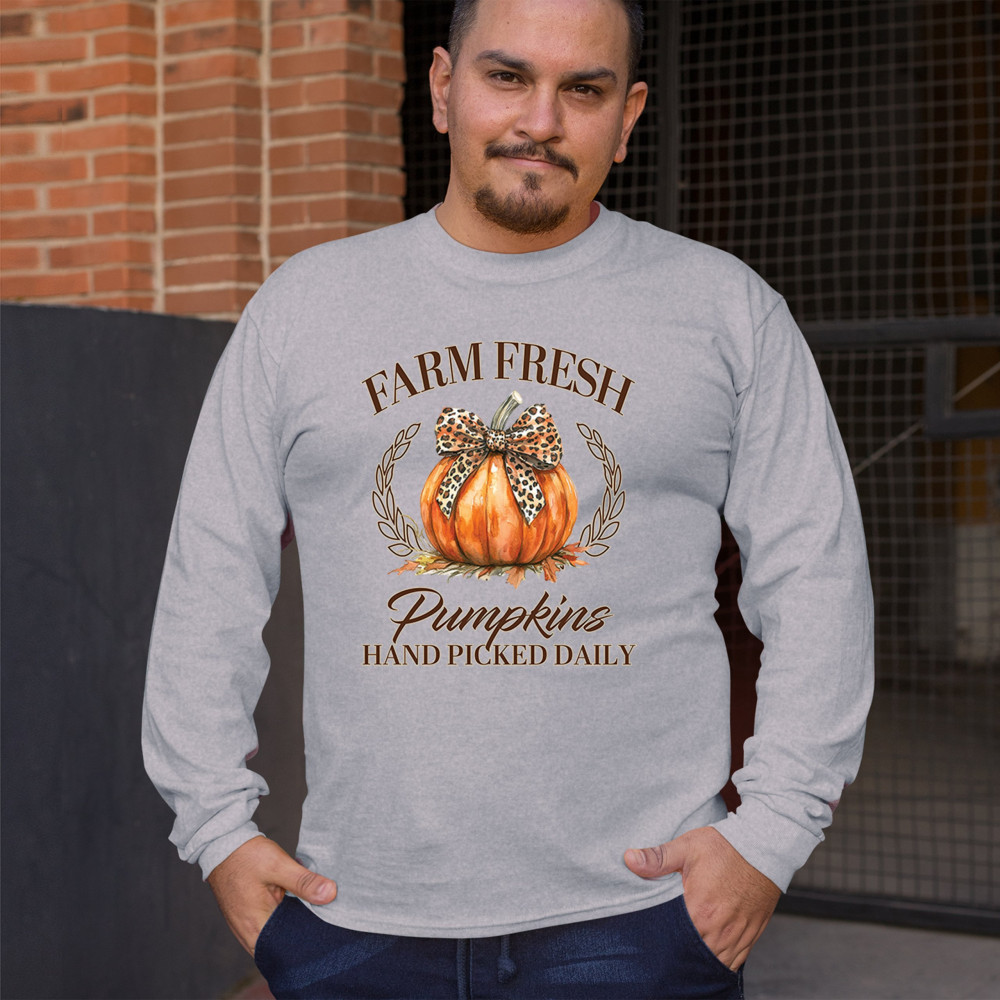 Bring the warmth of autumn into your life with this "Farm Fresh Pumpkins" design. Perfect for seasonal decor and fall festivities.