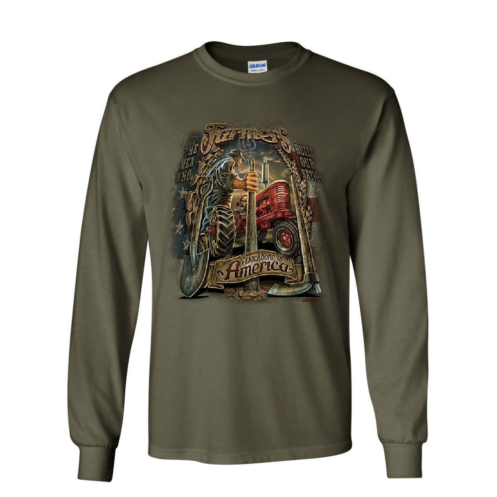 FARMERS BACKBONE OF AMERICA long sleeve t-shirt countryside farming patriot tee military green