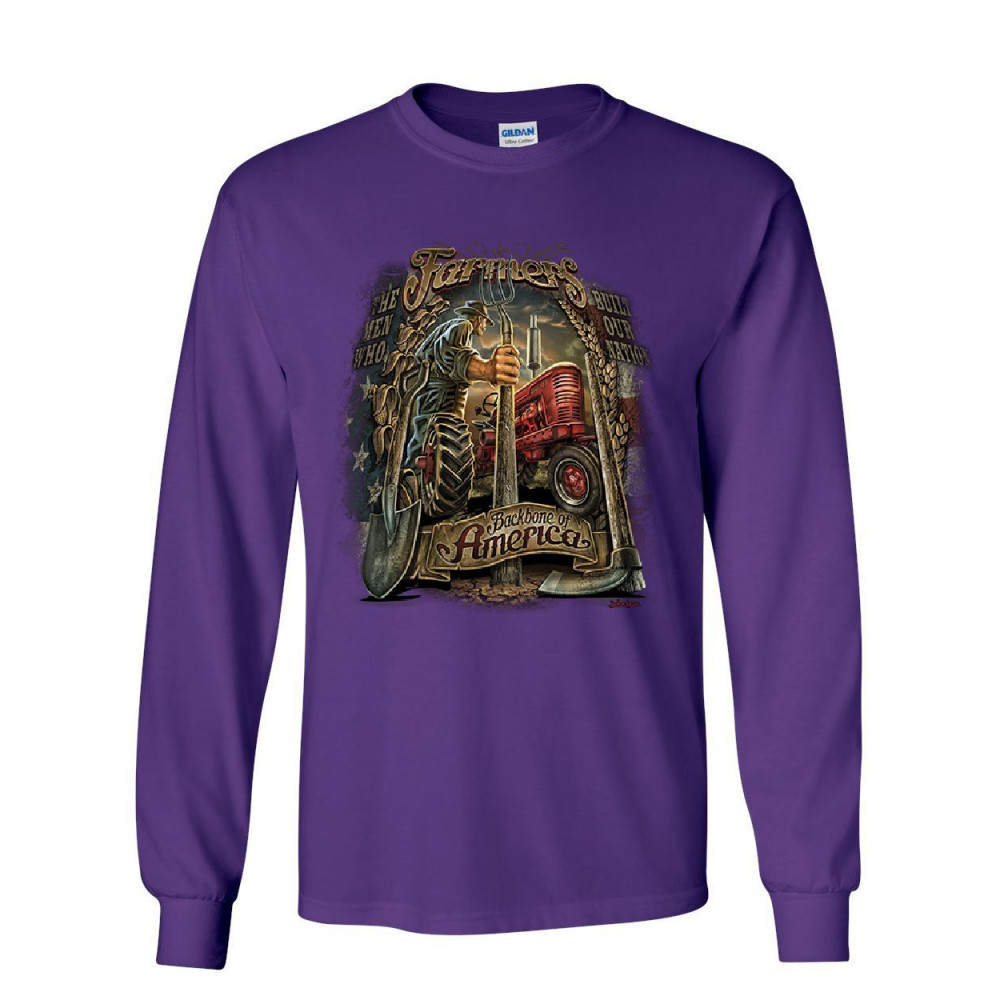 FARMERS BACKBONE OF AMERICA long sleeve t-shirt countryside farming patriot tee purple