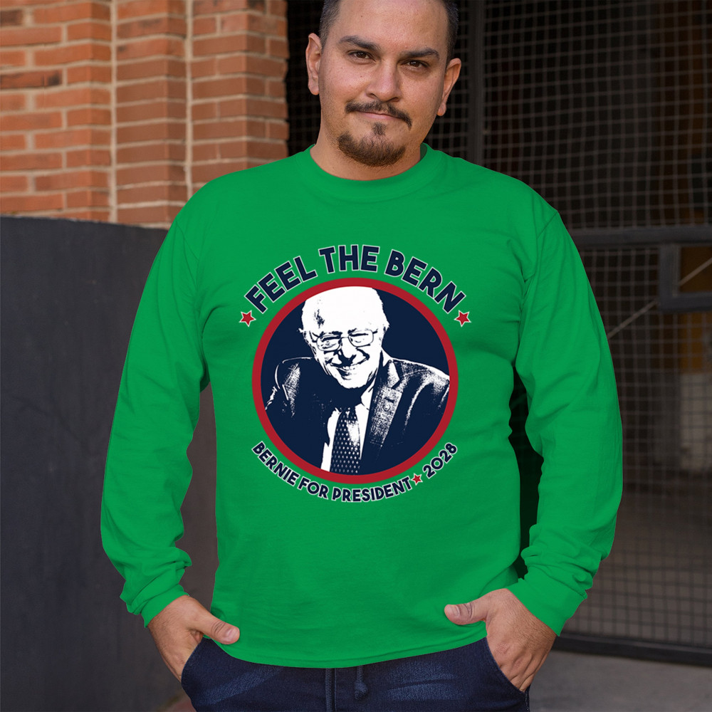 Show your commitment to democratic reform with this "Feel the Bern – Bernie for President 2028" design. Featuring Bernie Sanders’ portrait and patriotic colors, it’s perfect for political events, marches, or campaign volunteering. Wear it with pride at rallies, protests, or voter registration drives to back the progressive movement.