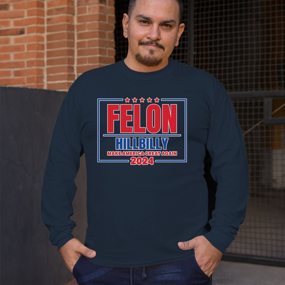 he "Felon Hillbilly 2024" design is perfect for Trump supporters, embodying conservative values and American pride.