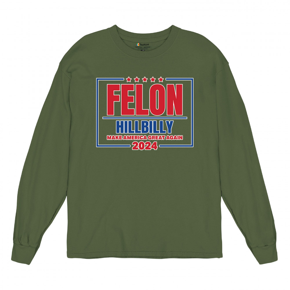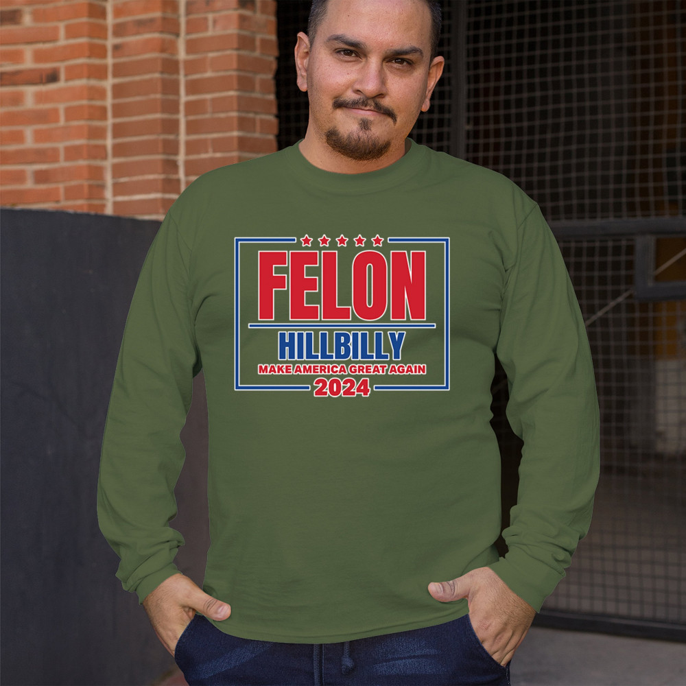 he "Felon Hillbilly 2024" design is perfect for Trump supporters, embodying conservative values and American pride.