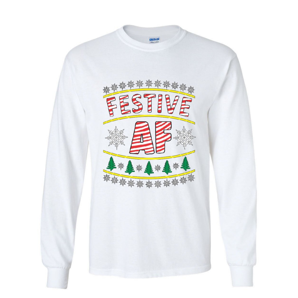 FESTIVE AF long sleeve t-shirt merry christmas xmas funny holiday ho ho ho tee white