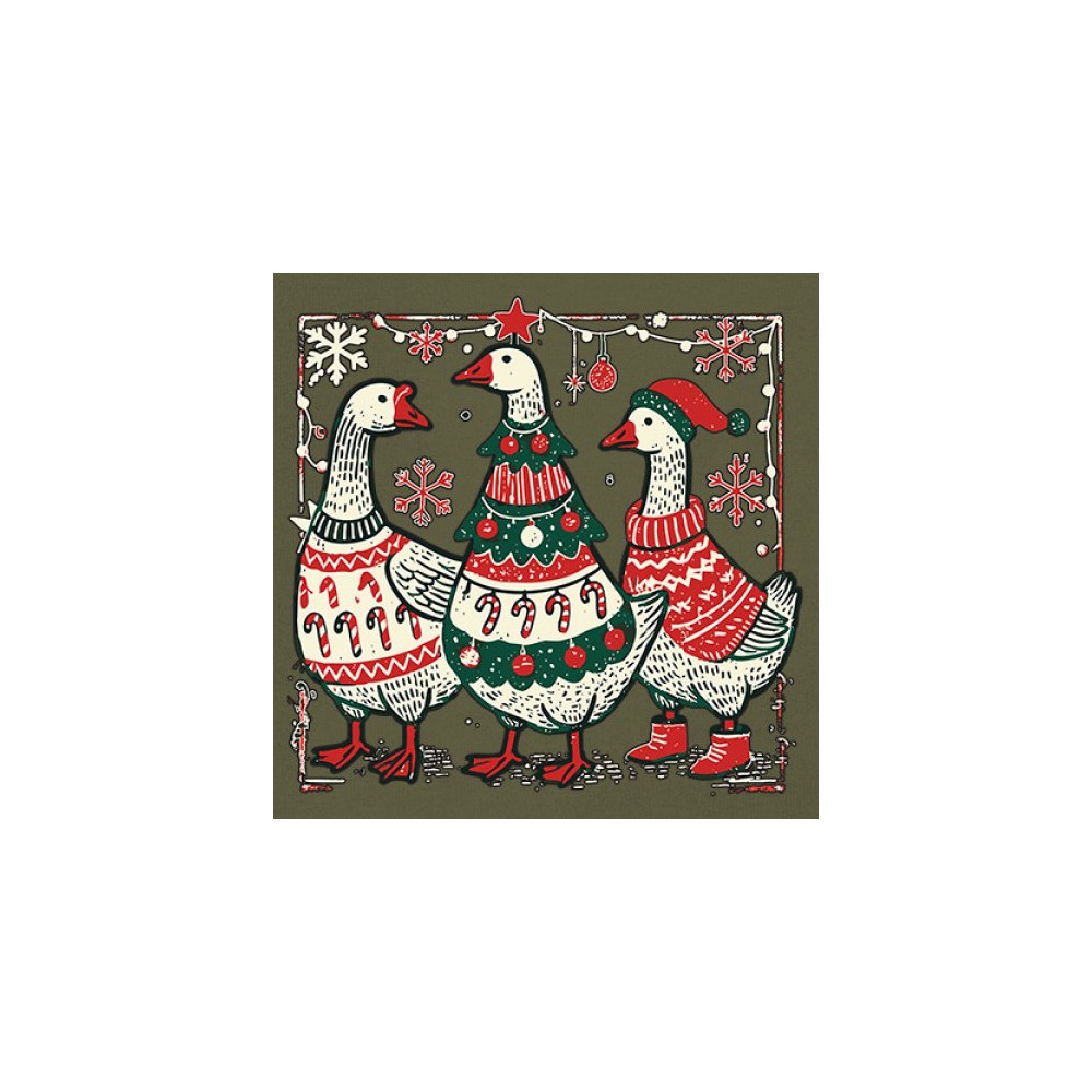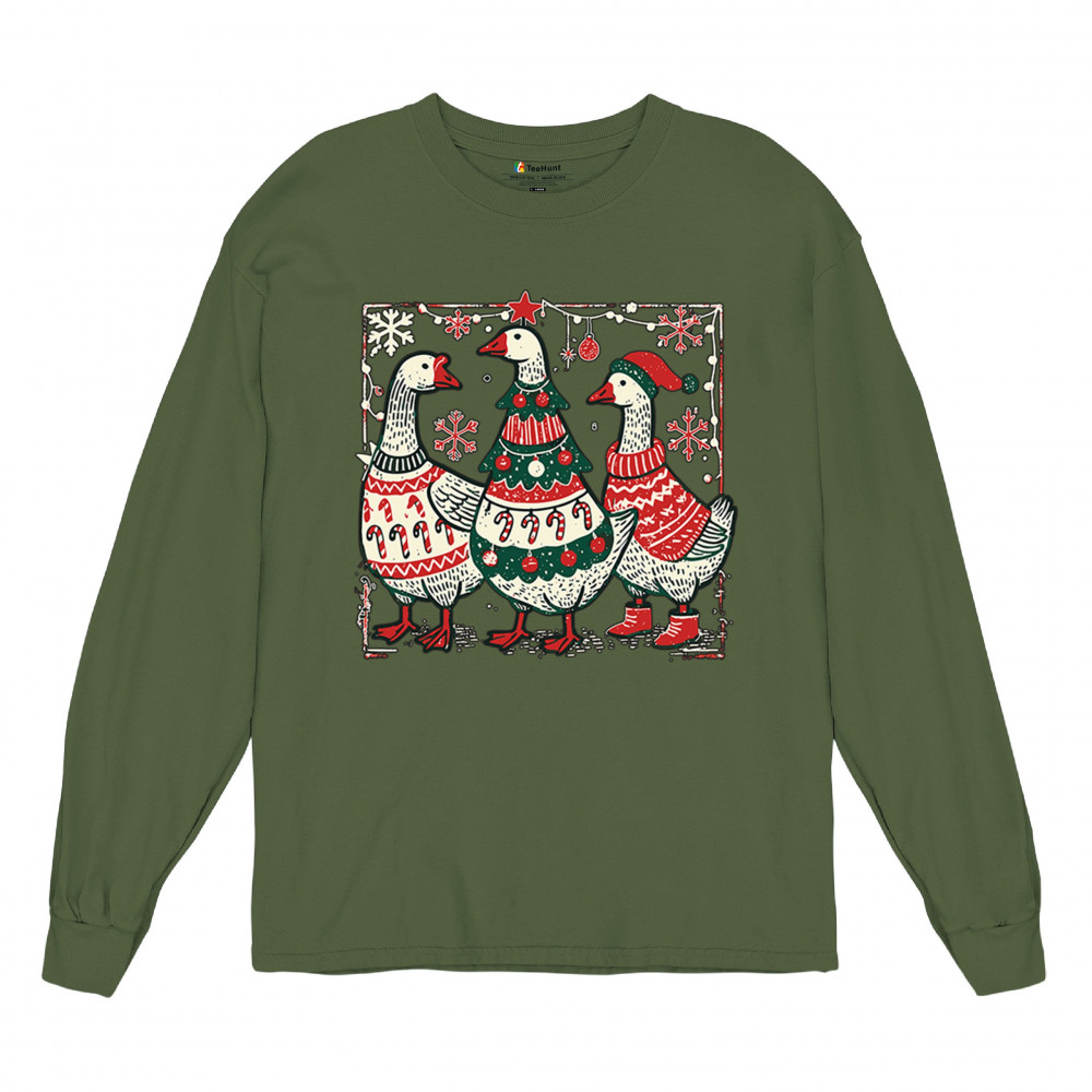 This festive goose Christmas design blends holiday humor, winter charm, and playful farm-animal personality. Featuring three geese dressed in seasonal patterns, it’s ideal for holiday parties, family gatherings, Christmas morning photos, barnyard lovers, and anyone looking for a fun seasonal graphic with cheerful holiday spirit.