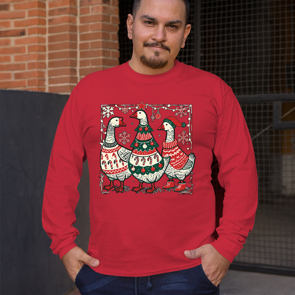 Festive goose Christmas design with playful holiday patterns, perfect for barnyard fans, cheerful gatherings, and fun seasonal celebrations.