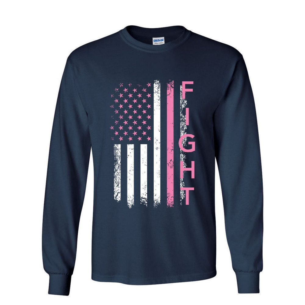FIGHT CANCER PINK FLAG long sleeve t-shirt breast cancer awareness navy blue