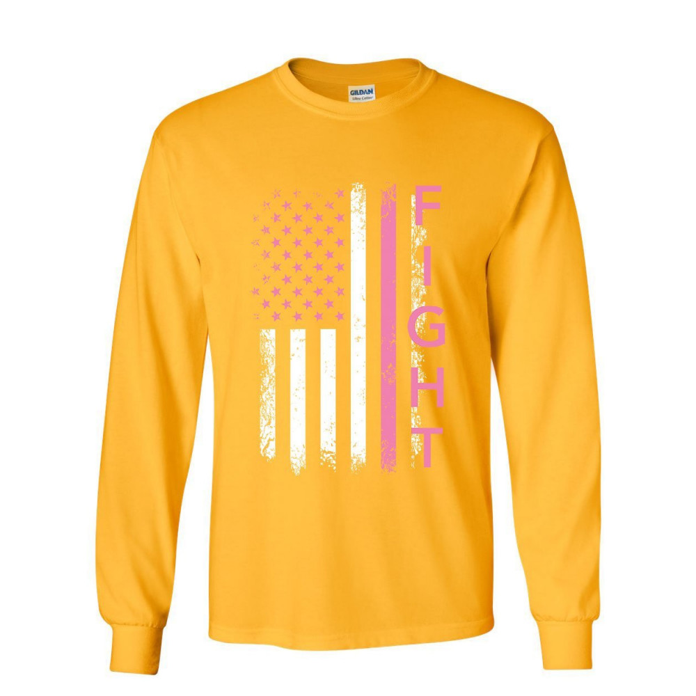 FIGHT CANCER PINK FLAG long sleeve t-shirt breast cancer awareness yellow