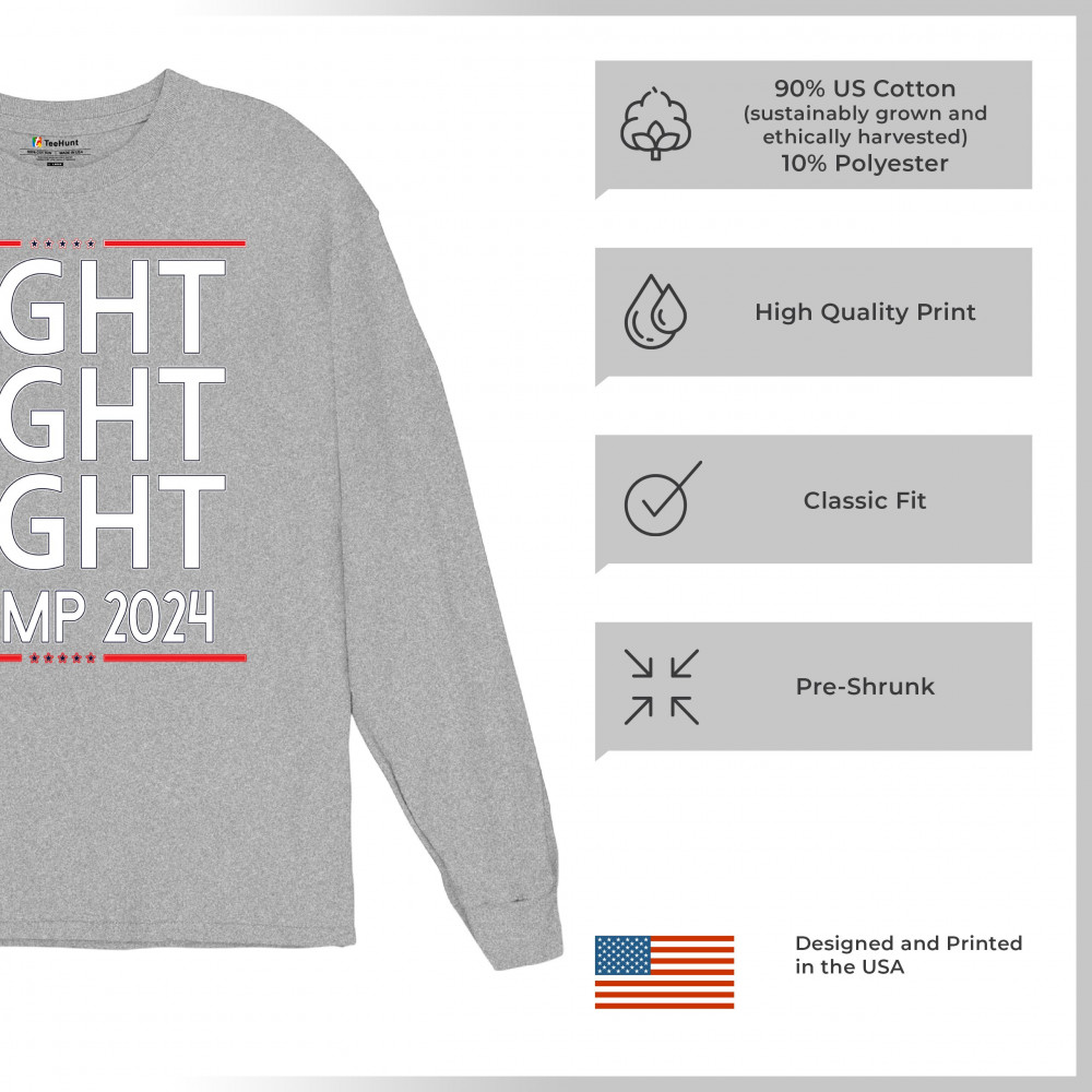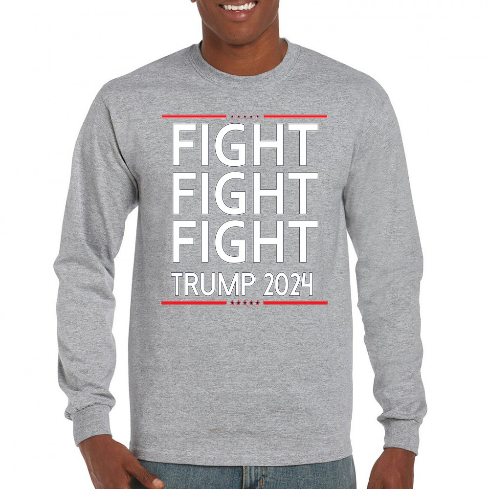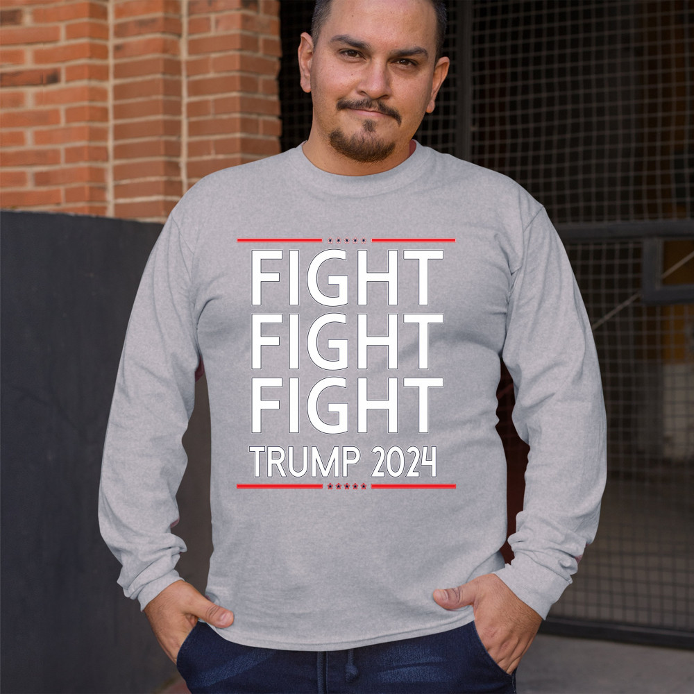 Show your Trump 2024 support with this bold "Fight Fight Fight" design. Perfect for rallies and everyday wear. Stand with America!