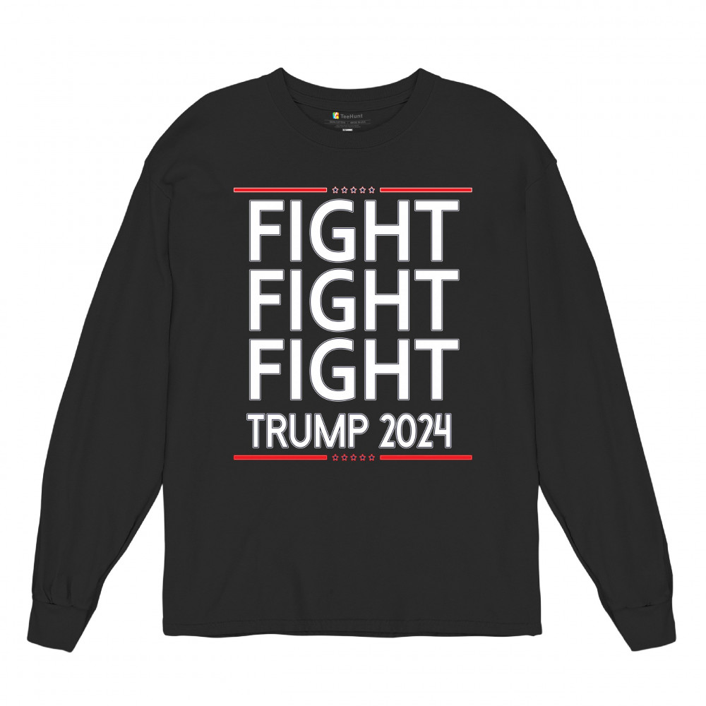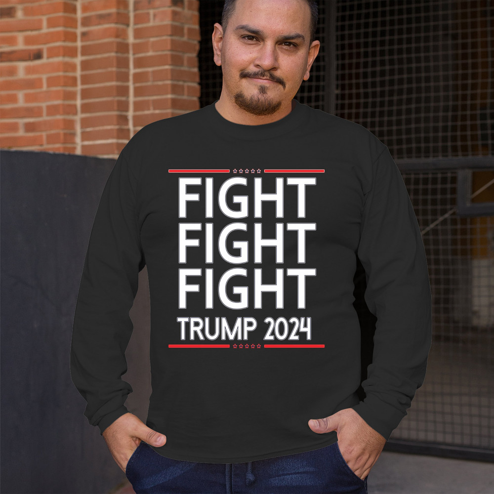 Show your Trump 2024 support with this bold "Fight Fight Fight" design. Perfect for rallies and everyday wear. Stand with America!