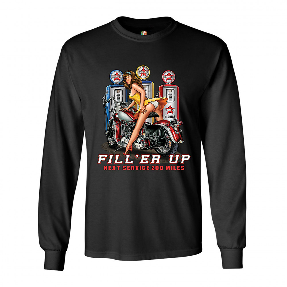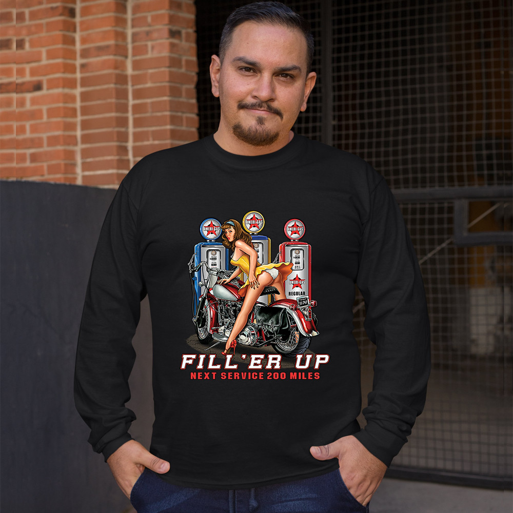 FILL 'ER UP long sleeve t-shirt sexy pin-up girl biker rider live to ride black