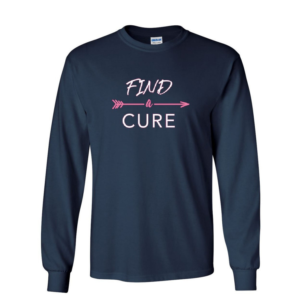 FIND A CURE long sleeve t-shirt october breast cancer awareness support hope tee navy blue