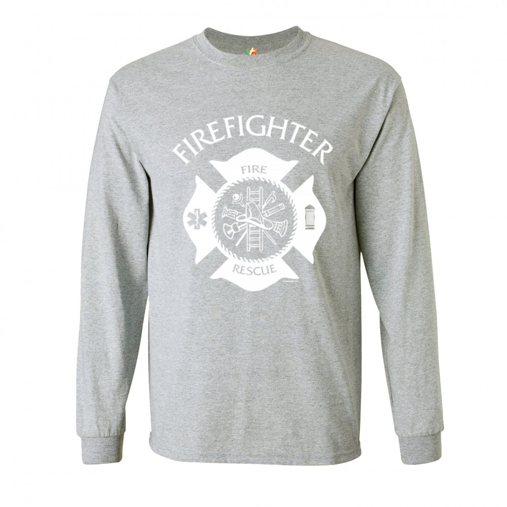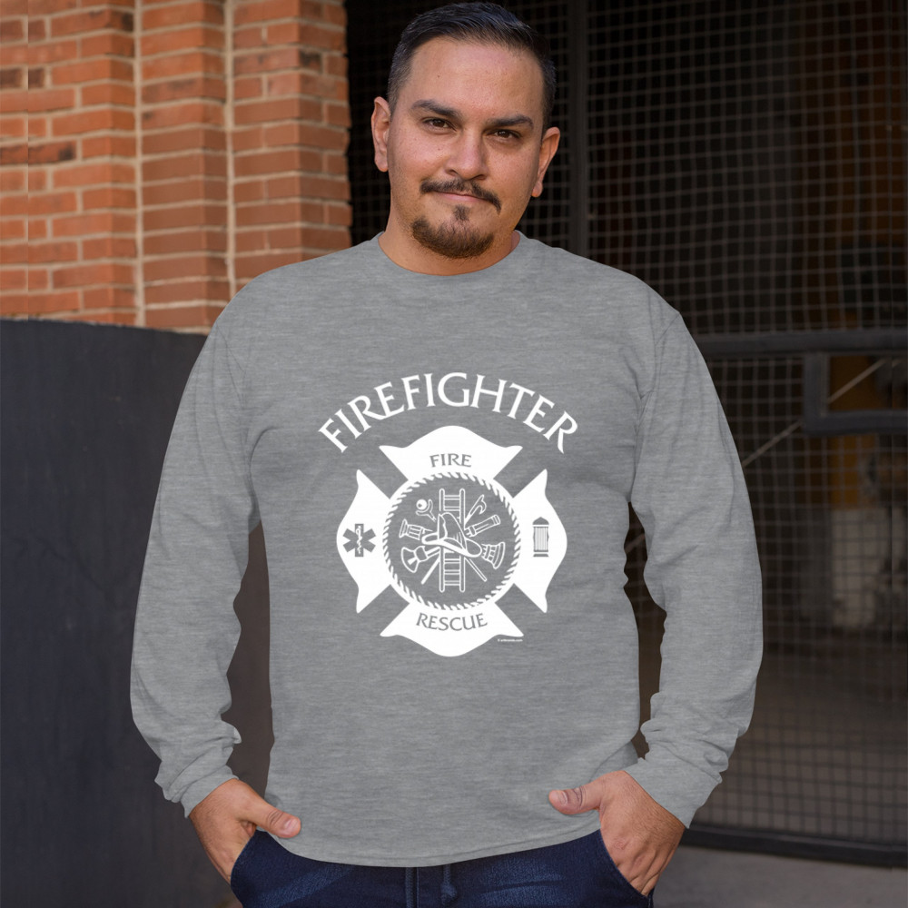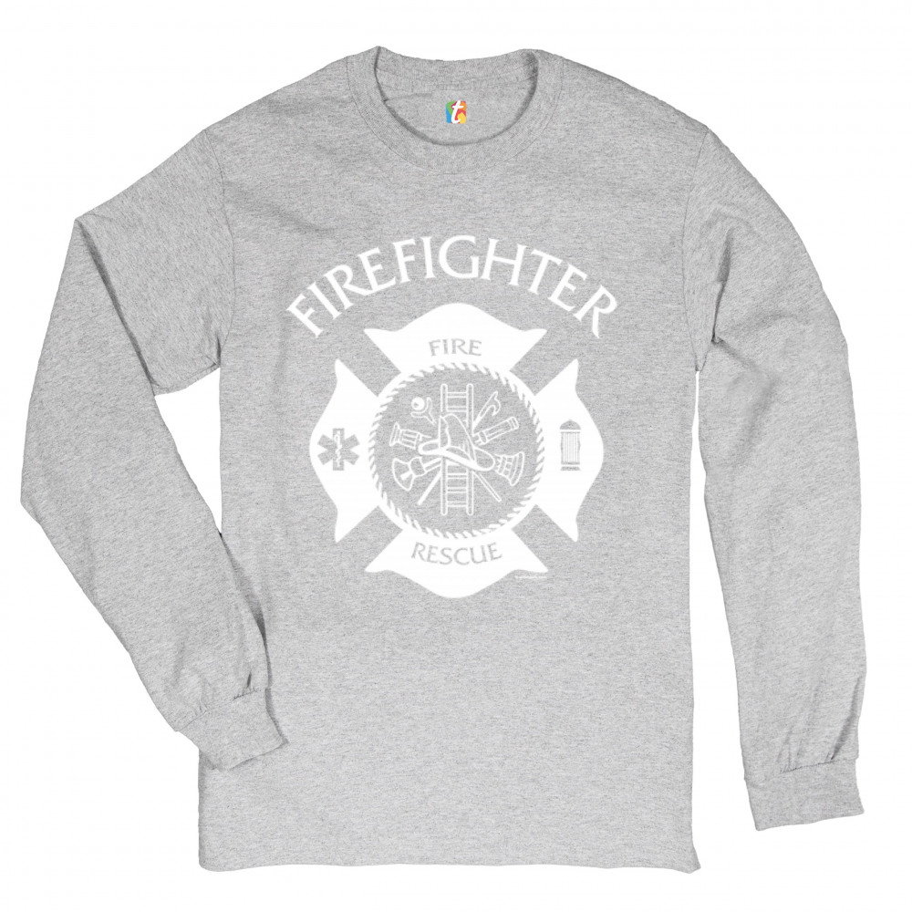 FIREFIGHTER EMBLEM long sleeve t-shirt fire and rescue first responders gray