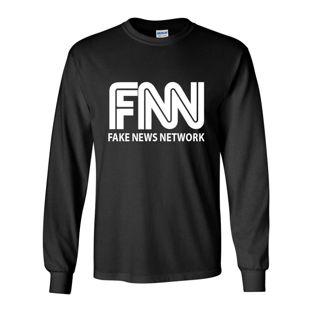 FNN FUNNY PARODY long sleeve t-shirt fake news trump president black