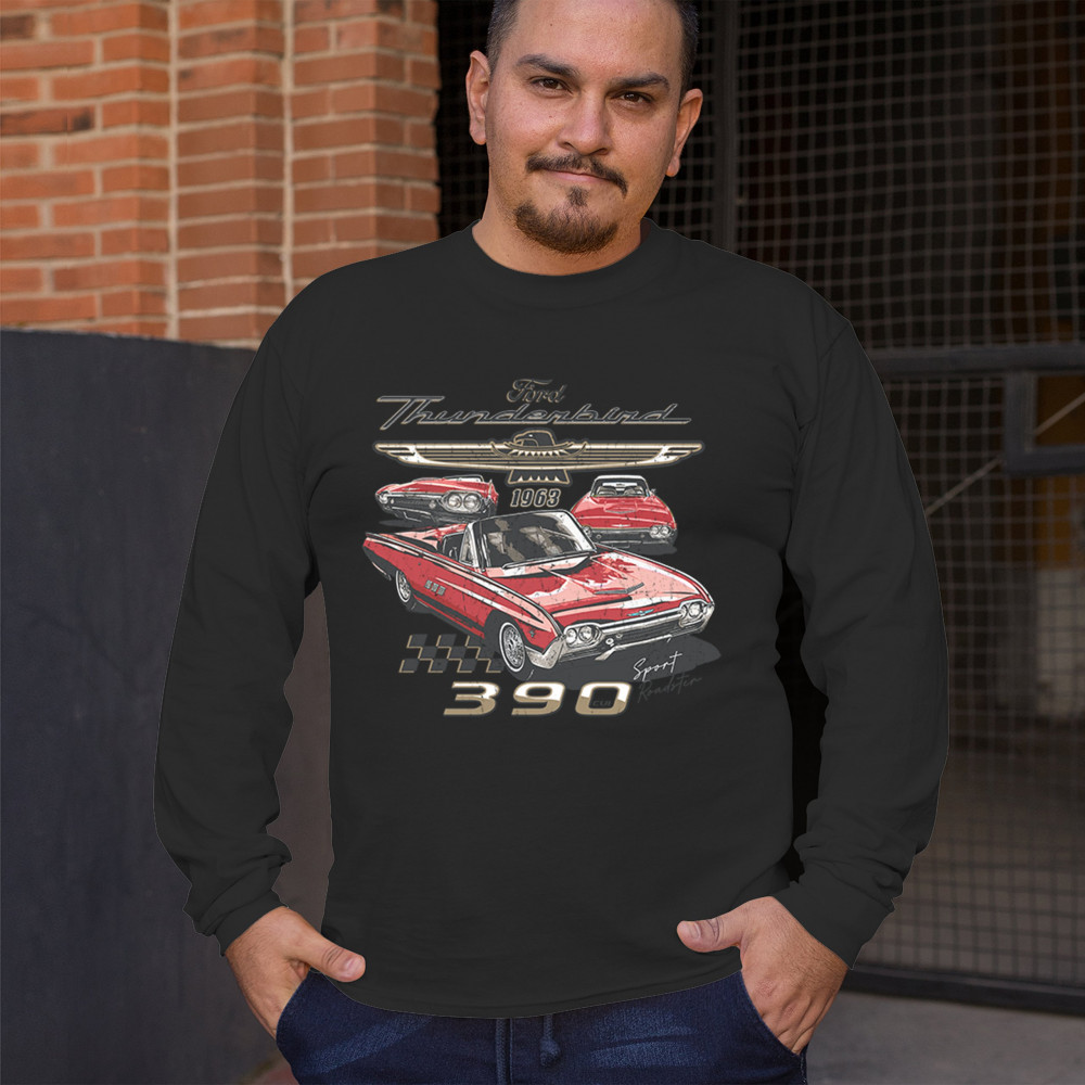 Celebrate the style and power of the 1963 Ford Thunderbird with this striking design featuring the classic 390 V8 Sport Roadster. With its unmistakable red finish and vintage detailing, this piece captures the heart of American auto history. A perfect tribute for Ford fans, car collectors, and retro cruising lovers.