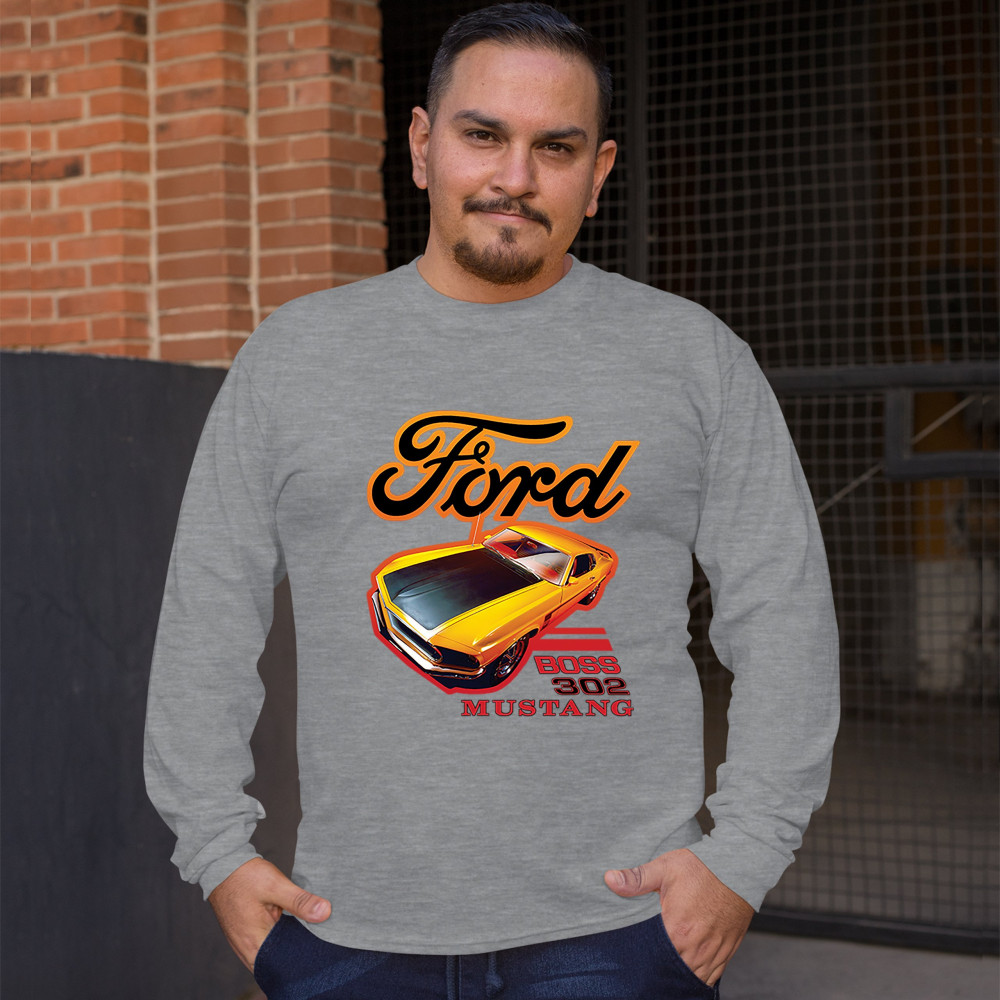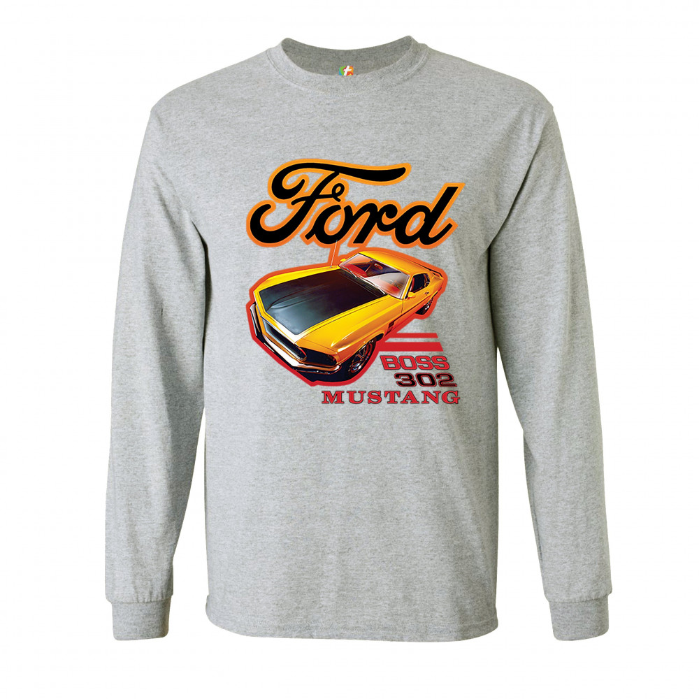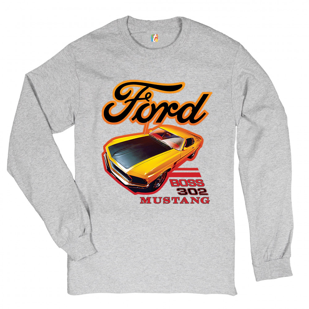 FORD BOSS 302 MUSTANG long sleeve t-shirt vintage american muscle car licensed gray