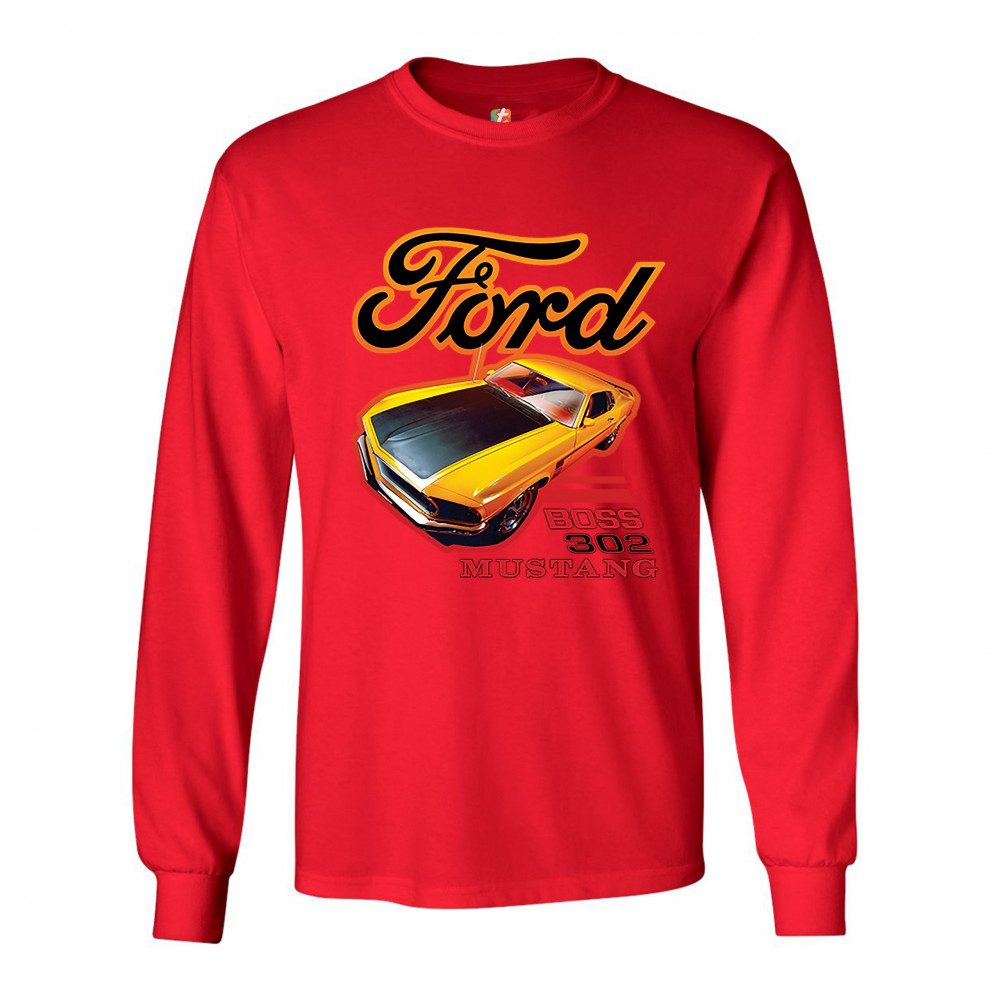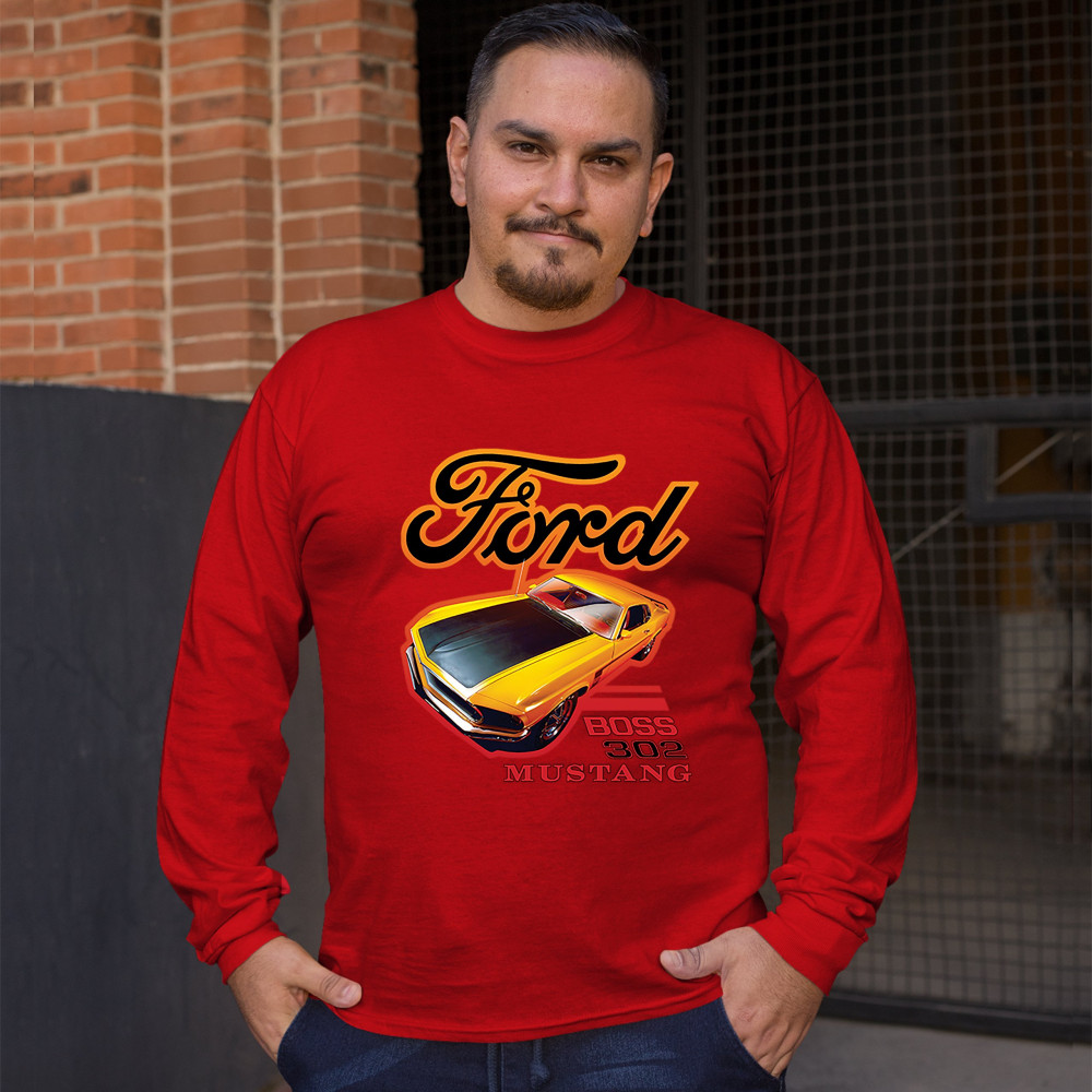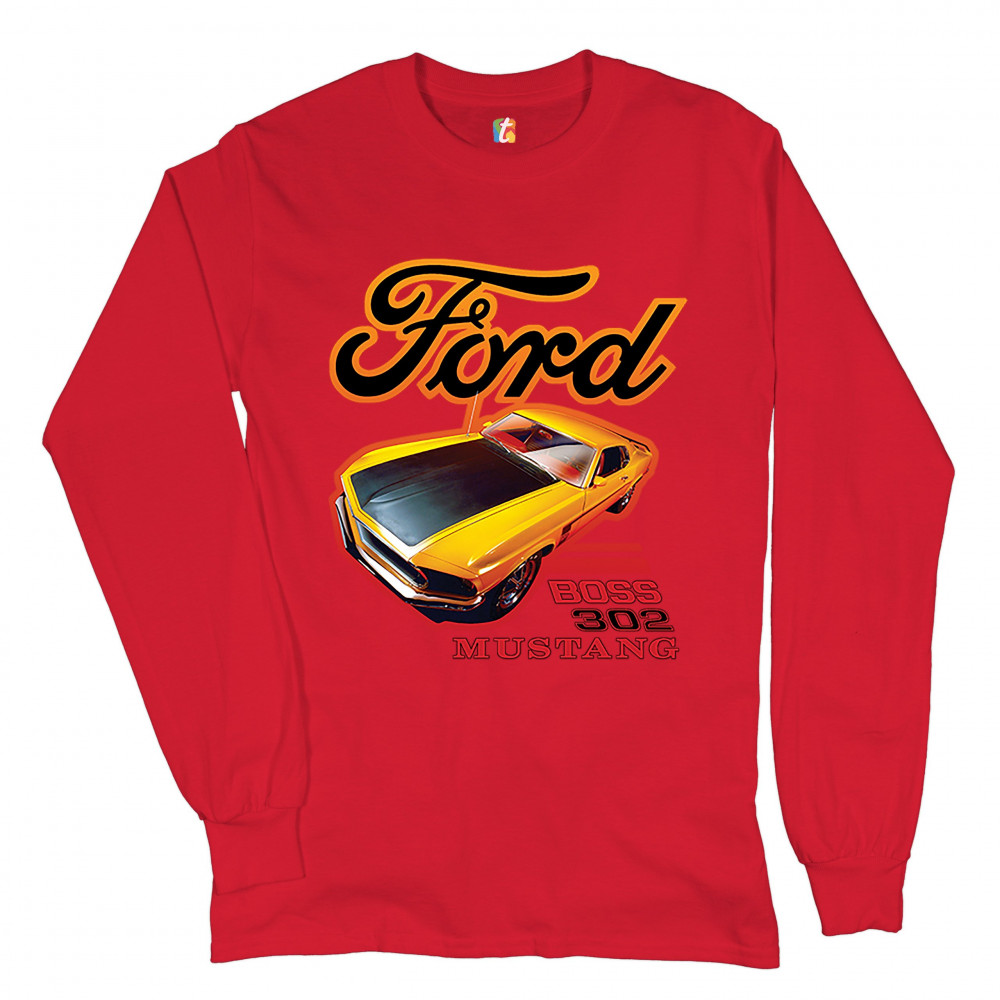 FORD BOSS 302 MUSTANG long sleeve t-shirt vintage american muscle car licensed red